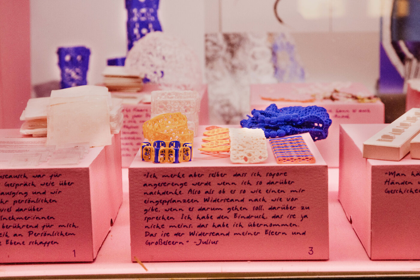 Mensch und Körper bilden den Kontext für getragenen Schmuck und Skulpturen. Sie werden Teil von Ereignissen, Handlungen und Alltagssituationen. Die Art und Weise, wie sich Schmuck und getragene Skulpturen auf dem menschlichen Körper entfalten (z.B. Träger*innen, Betrachter*innen, Künstler*innen), kann sie zu Medien der Kommunikation und Erkundung persönlicher Geschichten und Ereignisse werden lassen. Durch ihre Nähe zum Körper überschneiden sie sich mit kulturellen, ästhetischen und persönlichen Anliegen, Gesellschaft, Umwelt, Geschichte, Technologie, Emotionen und vieles mehr. Darüber hinaus bieten diese künstlerischen Medien Ausdrucksformen, die das multisensorische und verkörperte Wissen erweitern. In bestimmten Situationen können sie auch als Requisite oder Handlungsaufforderung in Erscheinung treten.