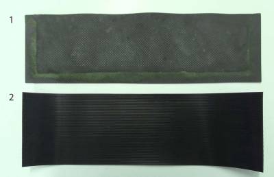 Der orginale Fußraum wurde seit 1995 durch eine Textilmatte ersetzt, welche nun starke Gebrauchsspuren aufwies. Um dem orginalen Fußraum so nahe wie möglich zu kommen wurde anhand der Rückstände des ursprünglichen Materials eine passende Fußmatte erworben und zurechtgeschnitten. 1. Orginale Fußmatte