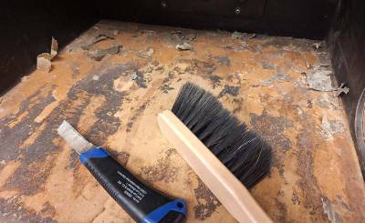 Um die neue Fußmatte anzubringen mussten zunächst die Textilmatte sowie Kleberückstände und Verschmutzungen entfernt werden.