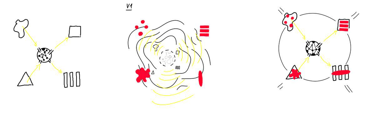 Unsere Rolle als gestaltende Gäste und Einladende zur Gestaltung im Prozess der [SDS] war so auch der Versuch, uns in spezifischen Dazwischen zu positionieren, um mögliche Verbindungslinien zu zeichnen – durch Bezugssetzungen zwischen sozialer Reibung und Kulturarbeit, zwischen Gestaltungspraxis und den Alltagserfahrungen von Exklusion. Die Foren kunstnaher Ausstellungsräume von Kunsthochschuldiskursen, aktivistischen Netzwerken, potenziellen Bildungsträgern und Praktikumsplätzen für die Jugendlichen sollten sich berühren und der spürbare und denkbare Verbindungshorizont durch neue Denkfiguren – primär für die teilnehmenden Jugendlichen, aber auch andere Entwerfende – beschrieben werden.