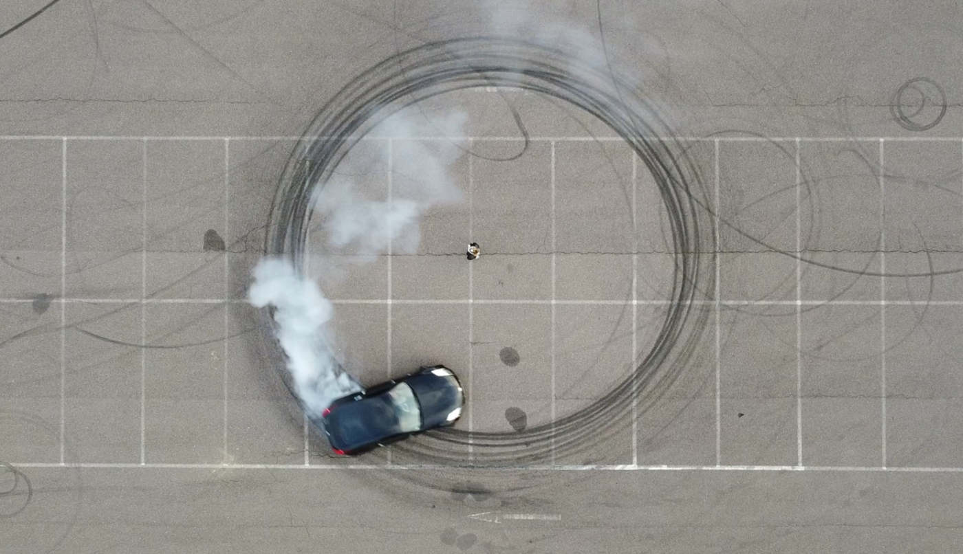 Den diesjährigen Kunstpreis der Stiftung der Saalesparkasse erhält Amber Hummel, Absolventin der Studienrichtung Malerei. Sie überzeugte die Jury mit ihrem performativ-dokumentarischen Projekt Das driftende Prinzip, betreut von Prof. Tilo Baumgärtel und Prof. Ana Hupe. In einer audiovisuellen Lesung veranschaulicht die Künstlerin eine selbst entwickelte gesellschaftliche Regel, nach der jede Person Verantwortung für ihr direktes Umfeld trägt. Diese gedachte Mikrosphäre besitzt einen Radius von fünf Metern, in deren Zentrum man selbst steht. Der visuelle Teil von Amber Hummels Arbeit macht diese Gesellschaftsvision auf eindrucksvolle Weise erfahrbar. Die Künstlerin steht auf einem asphaltierten Platz und wird von einer etwa fünfzig Meter über ihr schwebenden Drohne gefilmt. Sie markiert damit den Mittelpunkt ihrer Sphäre. Der Kreis mit einem Durchmesser von zehn Metern wird durch ein schnell um sie herum driftendes Auto begrenzt, das deutliche Reifenspuren auf dem Boden hinterlässt. Mit jeder Runde wird der sie umgebende Kreis klarer sichtbar und verbleibt schließlich als präzise Zeichnung im Raum.