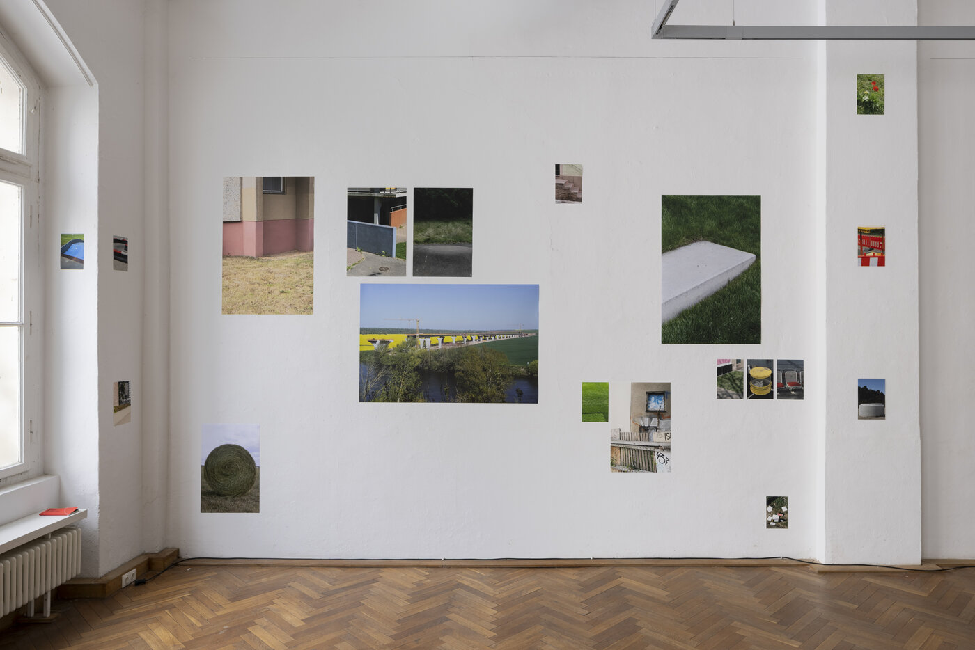 Zudem erhält Paul Kobert, Absolvent der Studienrichtung Zeitbasierte Künste, eine Anerkennung für seine Arbeit Toskana oder Provence. Die raumgreifende Fotoinstallation hat die Jury nachhaltig beeindruckt. Sie verbindet Fotografien unterschiedlicher Formate zu einem installativen Arrangement. Mit einem präzisen, reflektierten Blick durch die Kamera hält der Künstler architektonische und urbane Fragmente fest, die aus ihrem ursprünglichen Kontext gelöst erscheinen und teilweise mit beinahe portraithafter Genauigkeit untersucht werden. Treppenaufgänge, Straßenabsperrungen und eine im Bau befindliche, monumentale Brücke wirken dabei nahezu wesenhaft. Die Macht der vom Menschen überformten Umgebung ebenso wie ihre eigentümliche dinghafte Selbstgenügsamkeit schärfen den Blick auf die Welt und laden dazu ein, Paul Koberts fotografischer Wahrnehmung zu folgen.
