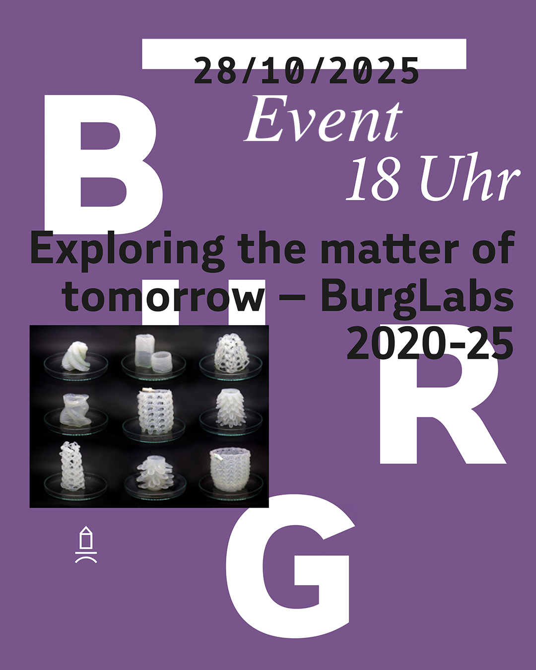 Die BurgLabs forschen seit 2020 experimentell und gestalterisch an der Burg Giebichenstein Kunsthochschule Halle zu Material und Technologie. Sie bieten eine inspirierende Forschungsumgebung, in der Visionen erprobt und Zukünfte entwickelt werden können. Mit dem SustainLab, BioLab und XLab entstanden drei Labore mit den Schwerpunkten Nachhaltigkeit, Biotechnologie und digitale Fertigung. Jenseits disziplinärer Zuschreibungen verstehen sich die BurgLabs als ein lebendiger Ort des Austauschs – zwischen Gestaltung und Wissenschaft, Material und Idee, Hochschule und Gesellschaft. Im Mittelpunkt steht das Verhältnis von natürlicher und vom Menschen geschaffener Umwelt – betrachtet durch die Linse des Materials, durch Prozesse des Machens, Denkens und Fragens.