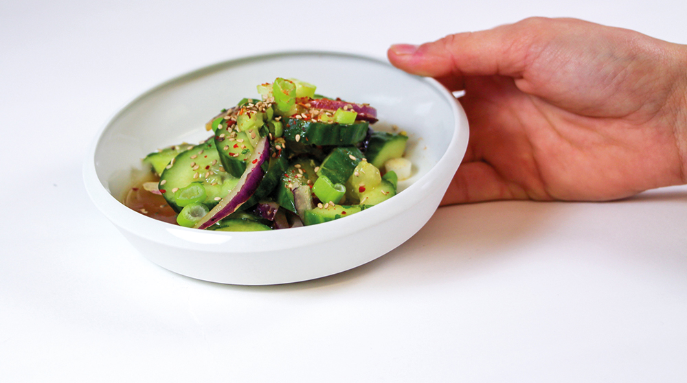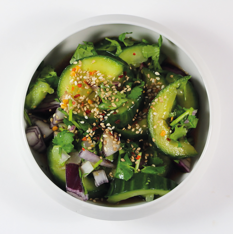 Entworfen ist CoCu für einen typisch chinesischen Gurkensalat, welcher neben der Gurke allein mit einem Dressing auskommt. Dieser wird mit Koriander und weiteren asiatischen Zutaten verfeinert.