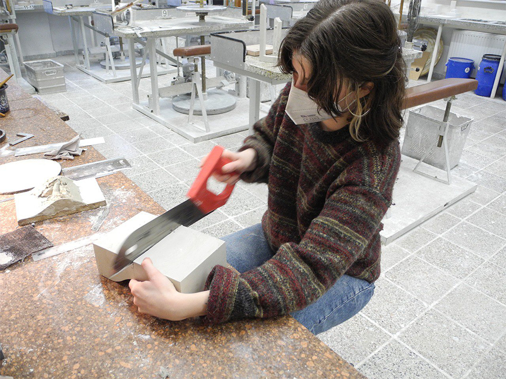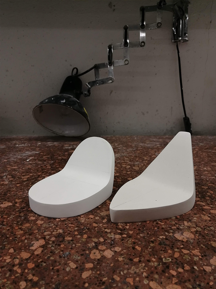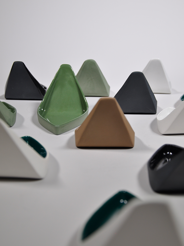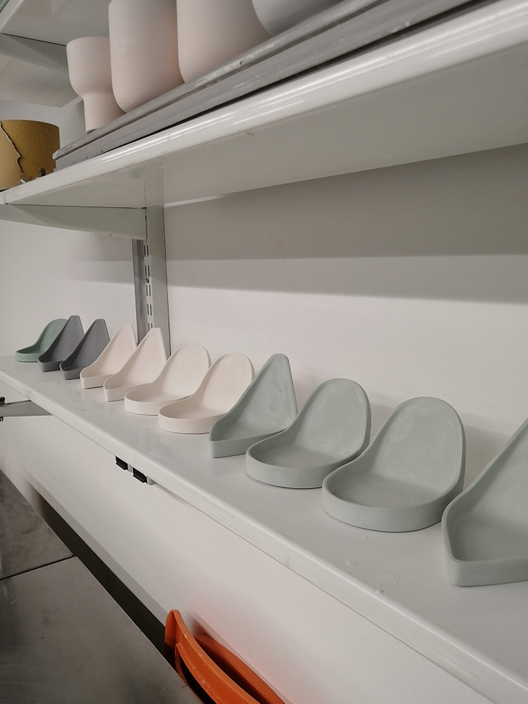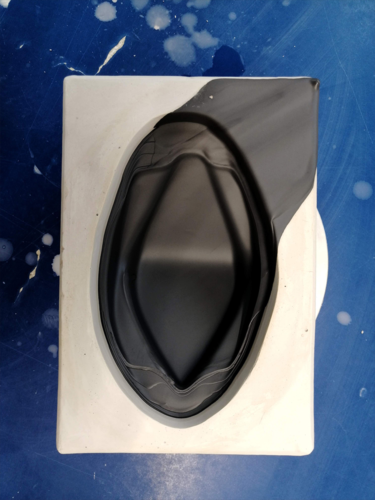In diesem Semester habe ich mich mit der Frage beschäftigt, inwiefern die Identität einer Modemarke in Porzellan übersetzt werden kann. Ausgangspunkt waren die Produkte von Versace by Rosenthal, die eine eindeutig plakative Anmutung aufweisen und so eher wie Fanarktikel anstatt eigenständige Designs wirken. Genau hier habe ich konzeptuell angesetzt und eine andere Herangehensweise vorgeschlagen. Das Bestreben und erklärte Ziel von Gianni Versace, dem Gründer des Modehauses, für jede*n Kund*in ein perfekt angepasstes Kleidungsstück zu entwerfen, habe ich aufgegriffen. Versace entwickelte zahlreiche patentierte Stoffe und Techniken, um die unterschiedlichsten Körper perfekt in Szene setzen zu können. Dieser Anspruch an seine eigene Arbeit wird von der Tatsache unterstrichen, dass viele Kleidungsstücke der Marke ausschließlich maßgeschneidert werden. Ich habe mich von diesem Ziel inspirieren lassen und so beschlossen, in diesem Projekt für nur ein einziges Lebensmittel zu entwerfen. Da Versace bis heute ein Familienunternehmen mit Wurzeln in Mailand ist, war es logisch, sich auf mediterranes Essen zu konzentrieren. Letztendlich habe ich mich für die Olive entschieden. Diese alltägliche Frucht soll sich mithilfe meines Entwurfs von einer Beilage zum Star der Mahlzeit wandeln. Zuerst wird die Olive auf der Präsentationsfläche angeboten und verzehrt, anschließend soll auch die übrig gebliebene Marinade verwendet werden. Durch eine Kippbewegung fließt das Öl den Steg hinunter und kann nun mit einem Stück Brot aufgefangen oder auf eine andere Mahlzeit geträufelt werden. Indem der Nutzer dazu eingeladen wird, die Funktion des Schälchens für sich zu interpretieren, wird das Genießen in zwei Phasen zu einem Erlebnis.