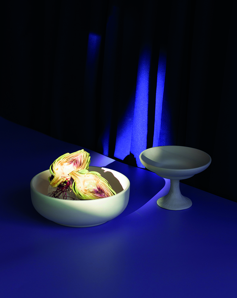 Fine Dining zeichnet sich heute durch ein multi-sensorisches Erlebnis aus, in dem ein intensives Geschmacks-Erlebnis durch verschiedene Texturen und Konsistenzen, das dem Gast durch besondere Texturen und Konsistenzen der Speisen geboten wird. Of crimson and clover bildet durch seine Oberflächen, Form- und Farbgebungen die Vielseitigkeit der gehobenen Gastronomie ab. Zudem verstehen sich die Gefäße als moderne Hommage an barocke, opulente Stillleben und unterstützen das besondere Erlebnis des Fine Dinings.