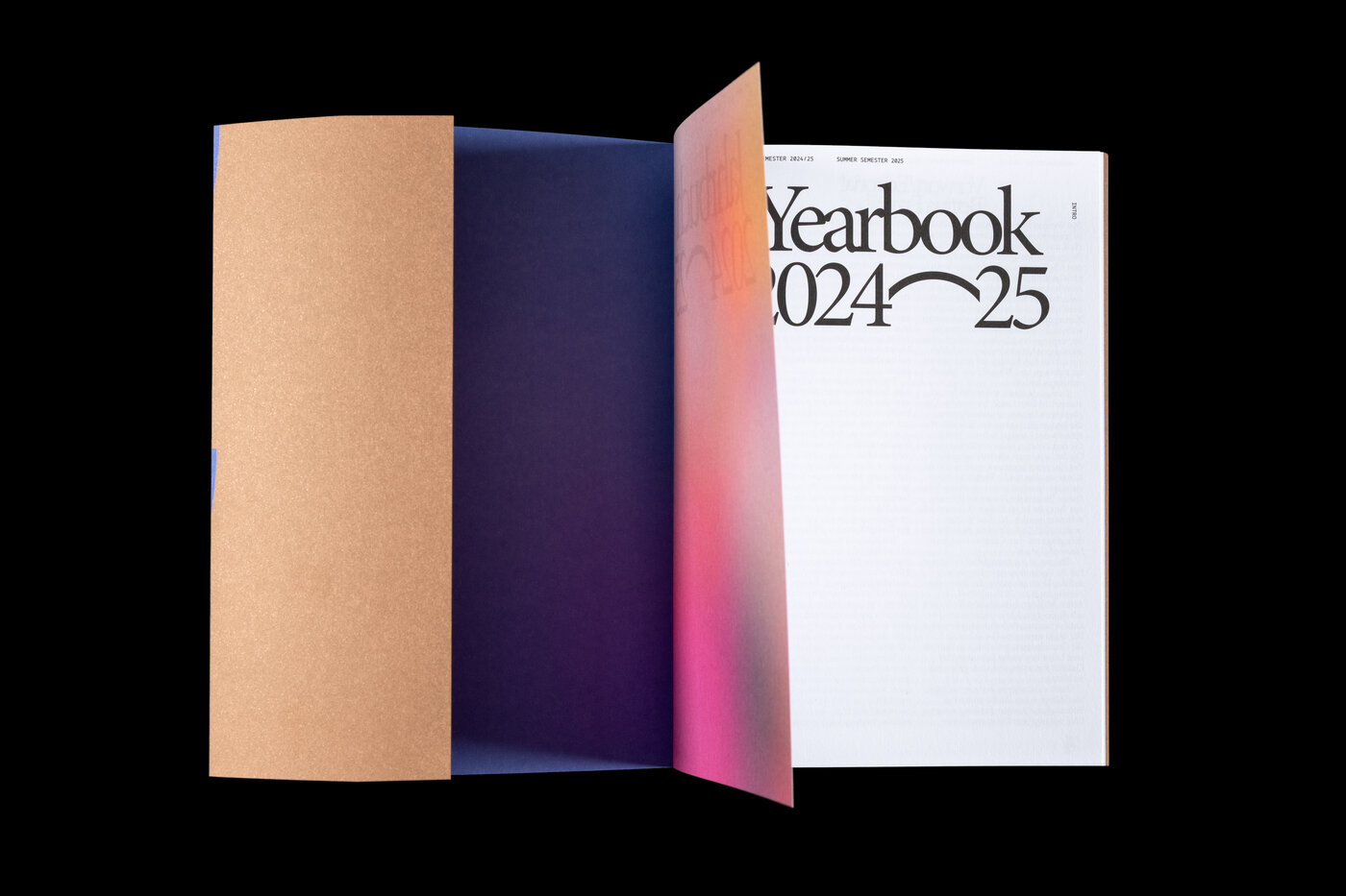 Gedruckt wurde das Jahrbuch in der hauseigenen Hochschuldruckerei, die für die Ausgabe zwei Sonderfarben einsetzte: Lilablau und Kupfer. Diese markante Farbkombination setzt einen besonderen Akzent und verleiht dem Jahrbuch 2024/25 einen unverwechselbaren Charakter.