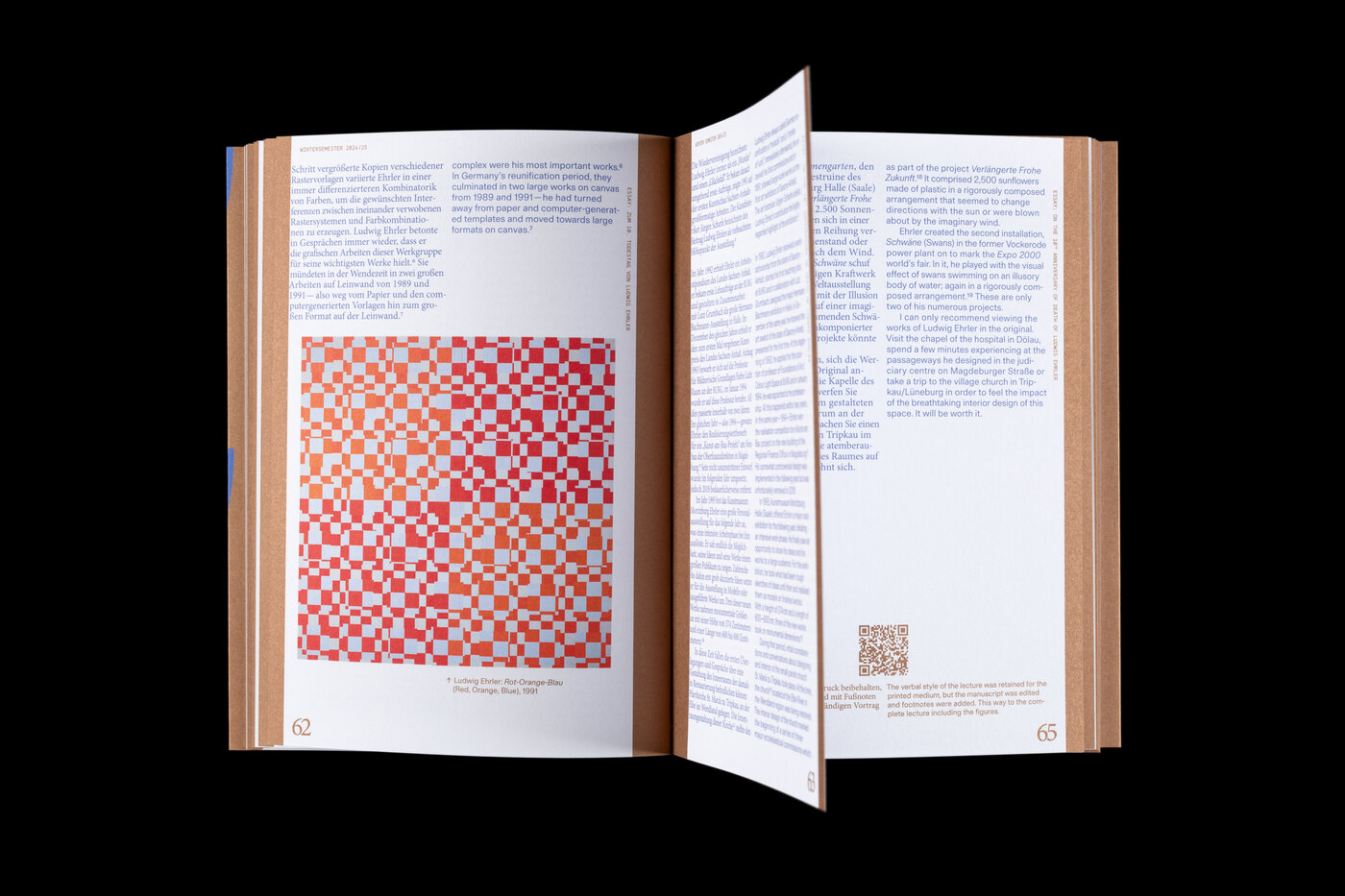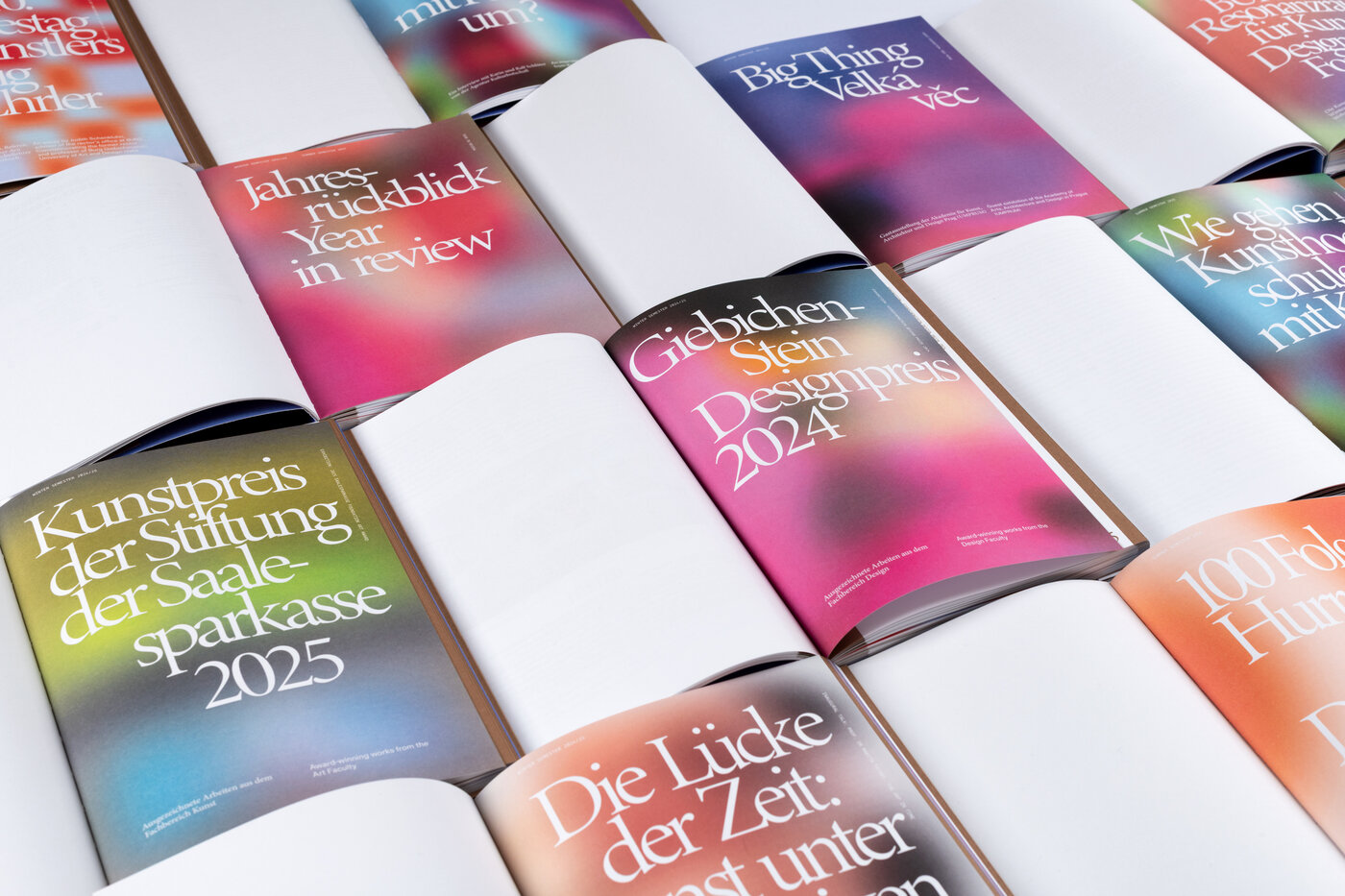 Das diesjährige Gestaltungsteam – Sonni Scheuringer (Künstlerische Mitarbeiterin im Rektorat und der Öffentlichkeitsarbeit der BURG) sowie das Studio kela-mo (Paula Hohengarten und Moritz Zeller) – führte das im Vorjahr von den Burg-Alumni Luka Löhner und Fabian Steidl entwickelte Gestaltungskonzept fort und entwickelte es zugleich weiter. Aufbauend auf dem Prinzip der vorhandenen Konstanten und Variablen knüpft die neue Ausgabe 2024/25 an das bewährte gestalterische Gerüst an und setzt zugleich neue Akzente.