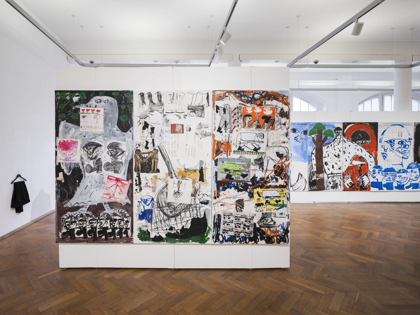 Statt in die ihr vertraute Forschung zu gehen, ist Michal Fuchs nach dem 7. Oktober 2023 durch das Zeichnen von Tausenden kleiner Linien in Form tanzender Frauen und Rauchfahnen vollständig in Selbstheilung eingetaucht. Im Spiegel des wachsenden unmenschlichen Grauens haben sich die Bedeutungen dieser Motive mit der Zeit erweitert. In der zweiten Werkgruppe Hora greift sie den Kreistanz wieder auf und erkundet seine Symbolik als Ausdruck von Gemeinschaft, Tradition und Identität, als Spiegel landwirtschaftlicher Zyklen und nationaler Narrative, die durch Migration transformiert werden.