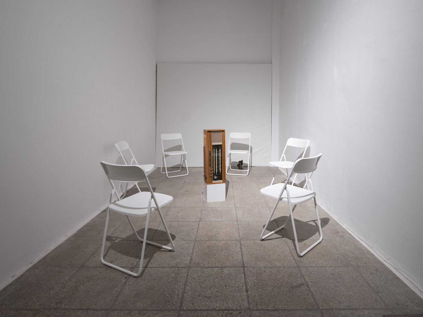 Aus biografischen Gründen interessiert sich Vanessa Henning für die Bakchai, eine ekstatische Sekte des Dionysos, da ihre Eltern Mitglied der Kommune des Künstlers Otto Mühl waren. Sie führte Interviews mit ehemaligen Mitgliedern, um aufzuzeigen, wie Ideale in Zwang, Abhängigkeit und Kontrolle umschlugen. Parallel erforscht Henning in AT BAKCHAI improvisierte musikalische Ekstase in Kooperation mit Lika Dittwald und der Theaterproduktion Bakkhai am neuen theater Halle. In der Ausstellung können Besucher*innen mit den entstandenen Tonspuren experimentieren.