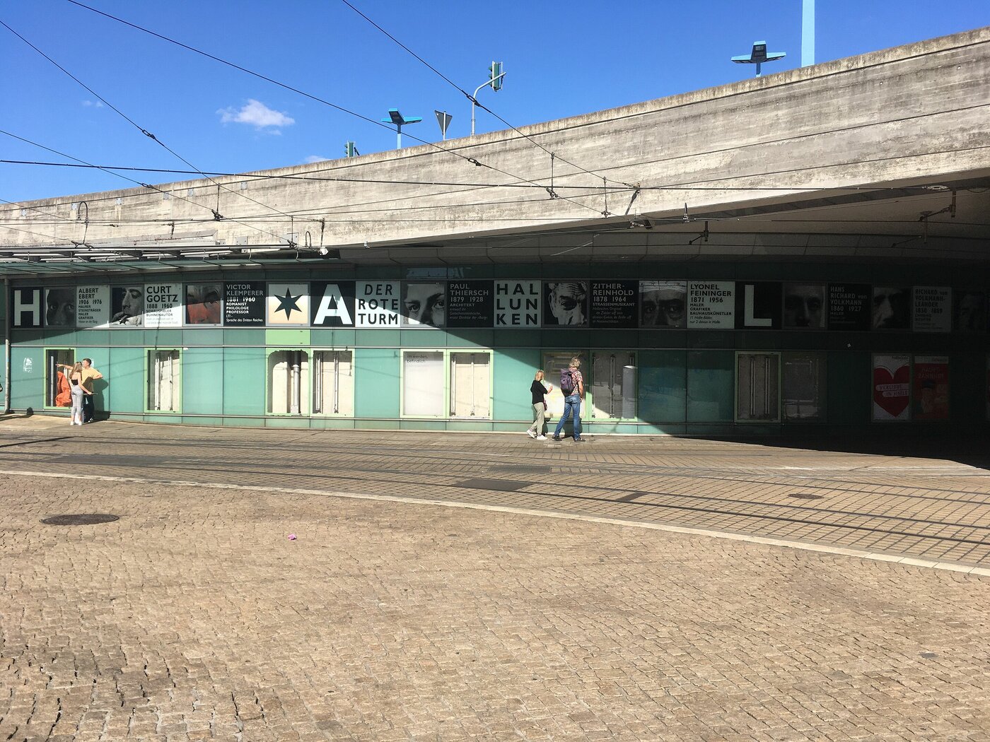 An den Rändern des Platzes befinden sich Schaukästen, die als Gestaltungselement fungieren: Teilweise bestückt die Stadt Halle die Kästen mit Eigenwerbung, teilweise wird der Raum Studierenden der Burg Giebichenstein zur Verfügung gestellt.