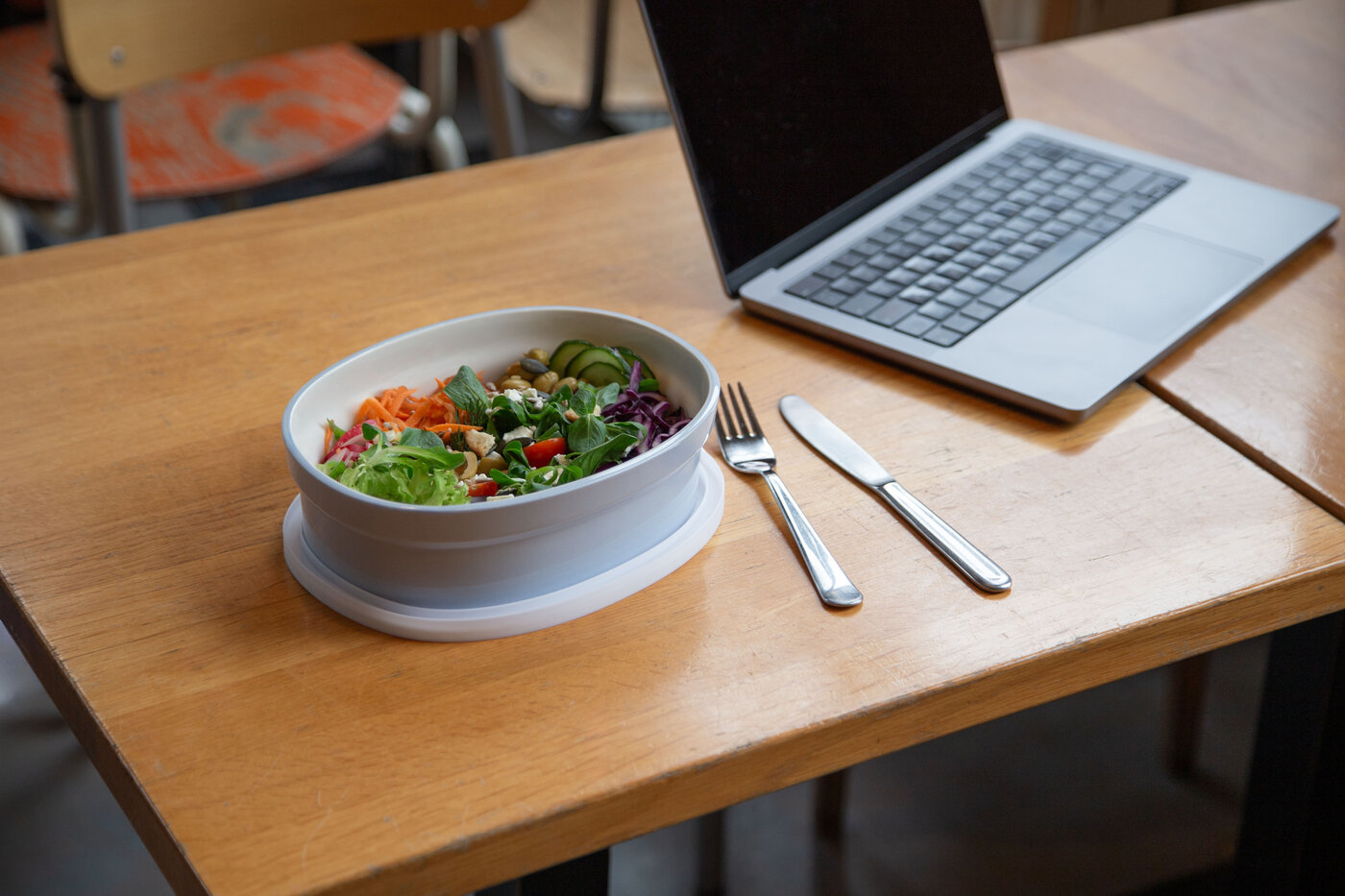 Ob für Zuhause, das Büro oder unterwegs – KERALA ist ein stilvolles Mehrweggeschirr für deine Mahlzeiten. Der auslaufsichere Silikondeckel sorgt für einen sicheren Transport, während das stapelbare Design Platz spart und eine einfache Aufbewahrung ermöglicht. Mit dem höhenverstellbaren Tragegurt können mehrere Schalen komfortabel transportiert werden, sodass verschiedene Speisen sicher verstaut und gleichzeitig mitgenommen werden können.