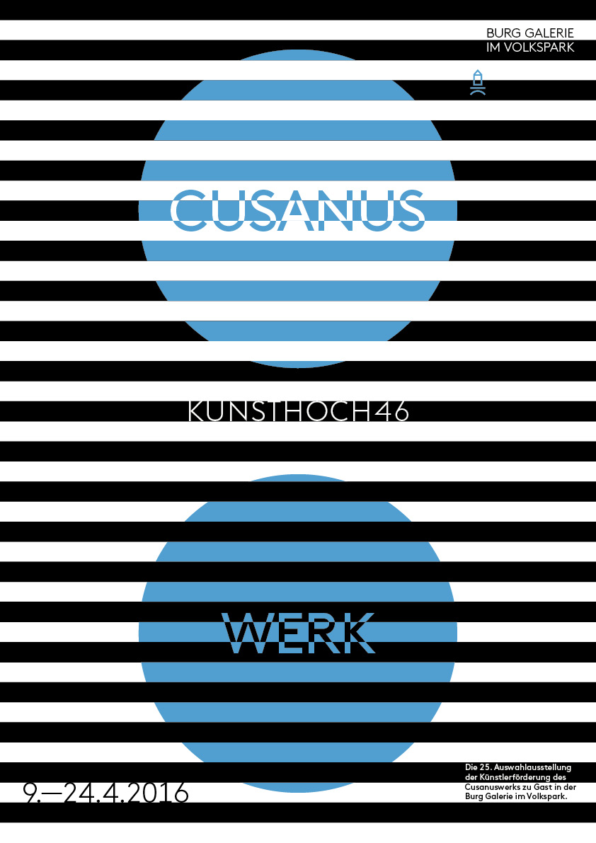 Das Cusanuswerk ist mit seiner Auswahlausstellung jedes Jahr in einer anderen Stadt bei Kunstvereinen, Ausstellungshäusern und Kunsthallen zu Gast. 2016 werden junge Künstlerinnen und Künstler der unterschiedlichsten Disziplinen ihre Arbeiten in der Burg Galerie im Volkspark präsentieren. Die für das Auswahlverfahren nominierten Studierenden haben die Aufgabe, ihre Ausstellung gemeinsam zu kuratieren: Sie treffen sich vor Ort und haben vier Tage Zeit, ein gemeinsames Konzept zu entwickeln.