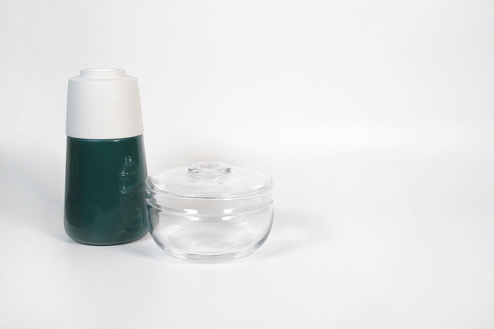 Unser beruflicher Alltag wird zunehmend geprägt von der Anforderung möglichst viel Arbeit, in bestmöglicher Qualität zu immer kürzeren Zeiten zu leisten. Was einige wenige Vorreiter wie Dänemark schon erkannt haben und Studien belegen, ist in Deutschland noch nicht angekommen: Pausen machen nicht nur produktiver und kreativer, sondern sorgen auch für den Erhalt körperlicher und psychischer Gesundheit. MiYo erinnert daran, sich diese wichtigen Pausen im Alltag zu nehmen. Das hohe Gefäß lädt dazu ein, ein Lieblingsgetränk zuzubereiten und aus dem dazugehörigen Becher zu genießen. Drei dieser Becher beinhaltet das hohe Gefäß. Zur Kaffee oder Tee Pause kann eine leckere Kleinigkeit, die in der Glas Dose des Sets gelagert wird, genommen werden. In die Vertiefung der Unterseiten der Gefäße, passt jeweils ein Deckel mit dessen Ring genau hinein.  So können die einzelnen Teile des Sets zu neuen Arrangements miteinander kombiniert werden, wodurch neue Tischlandschaften entstehen.