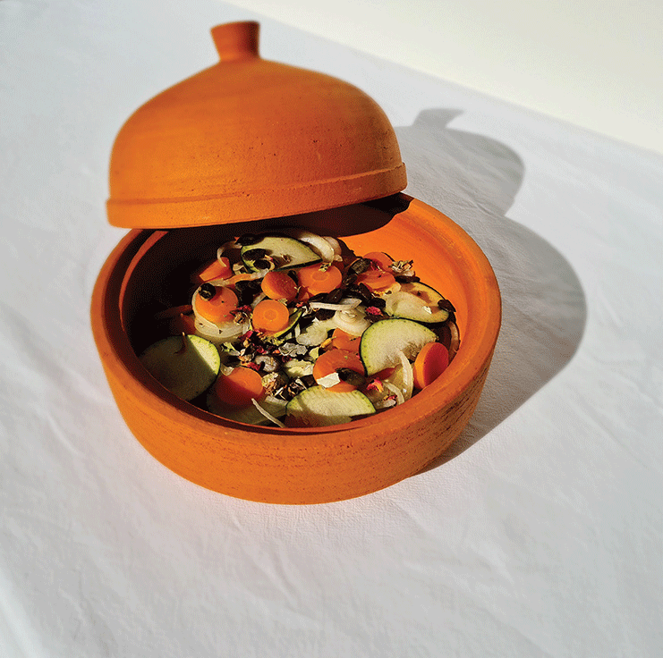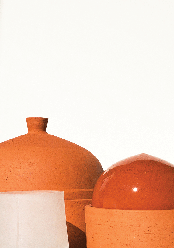 Richard's owner, mr. Hans Richard, wished to add tajine plate, oven-safe bread&butter serving plate and a set of bowls with lid to the existing tableware. Additionally, to make a set on its own, two different height glasses were also designed. The techniques used included for example plaster modelling, making plaster moulds for glass casting, casting crystal glass and hand throwing red clay.