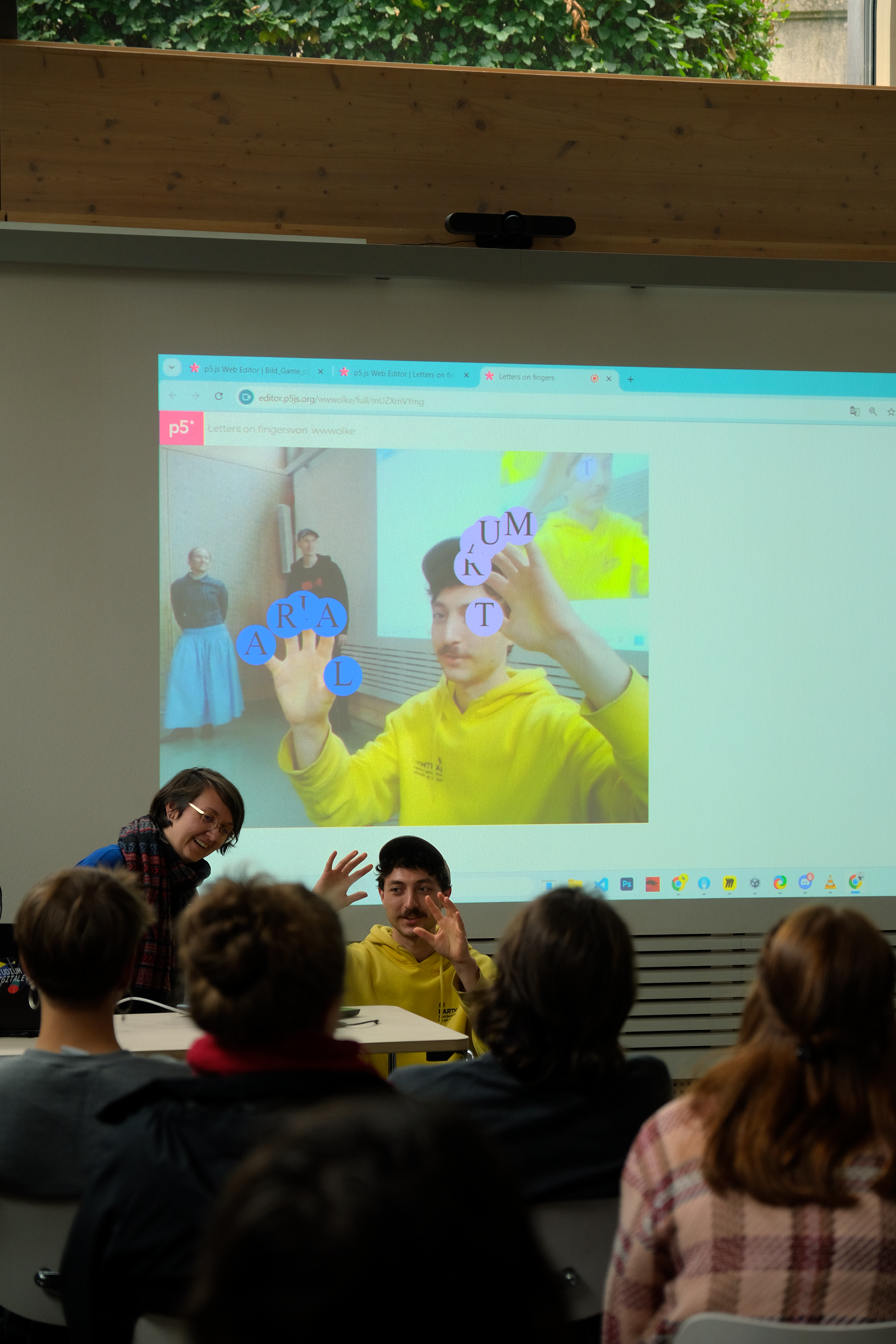 Mit Tools wie p5.js und ml5.js wurden Bildinformationen ausgelesen, transformiert und neu interpretiert. So entstanden generative Visualisierungen und algorithmische Kompositionen, die nicht nur ästhetisch, sondern auch konzeptuell das Verhältnis von Mensch, Maschine und Wahrnehmung reflektierten.Ergebnisse waren interaktive Anwendungen auf Basis von Motion Tracking, sowie eine Arduino-Integration zur Steuerung von LED-Panels.