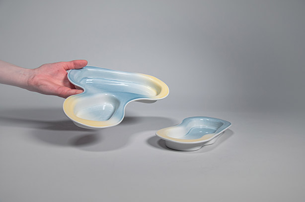 Service entstand aus der Frage, wie ein einfaches Tablett für Essen nicht industriell, starr und kalt wirken kann. Das Ziel ist ein neues Geschirr für den privaten Nutzer. Ein Menütablett zum Teilen.Im Sinne meines Konzepts habe ich mein Projekt service genannt. Dies bedeutet Tafelgeschirr auf französisch und meint ein ganzes Set, welches alle Bedürfnisse abdeckt.