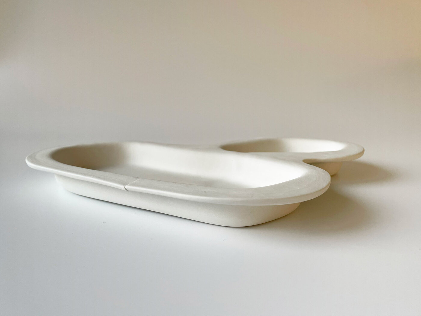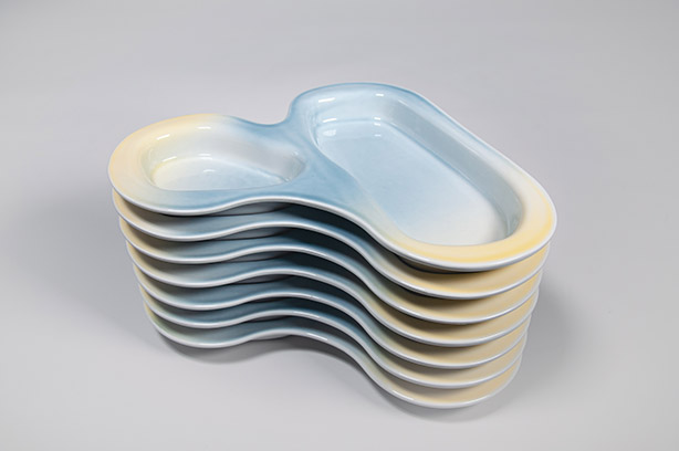 Das entstandene Objekt ist ein Menütablett und ein gesamtes Tafelgeschirr in einem. Jedes service ist handlich, leicht und aus hochwertigem Porzellan gefertigt. Es bietet bereits Platz für verschiedene Speisen und erweitert sich mit jedem weiteren angelegten service.