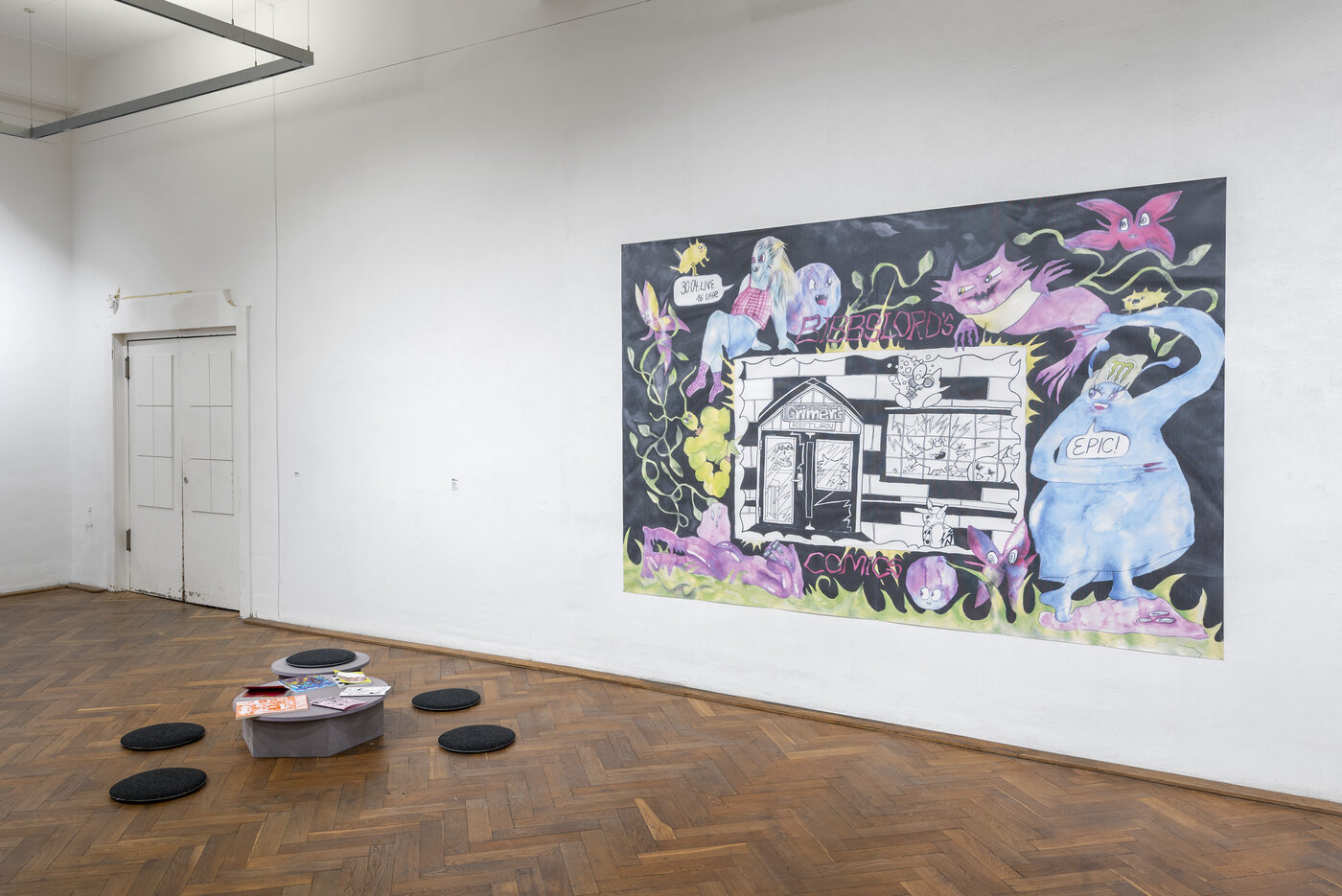 Mit Musik und Sound liest Marie Ehrentraut live aus vier eigenen Comics. Die Geschichten begleiten Fantasyfiguren in skurrilen Alltagssituationen auf humorvolle Weise und behandeln popkulturelle und queerfeministische Themen.