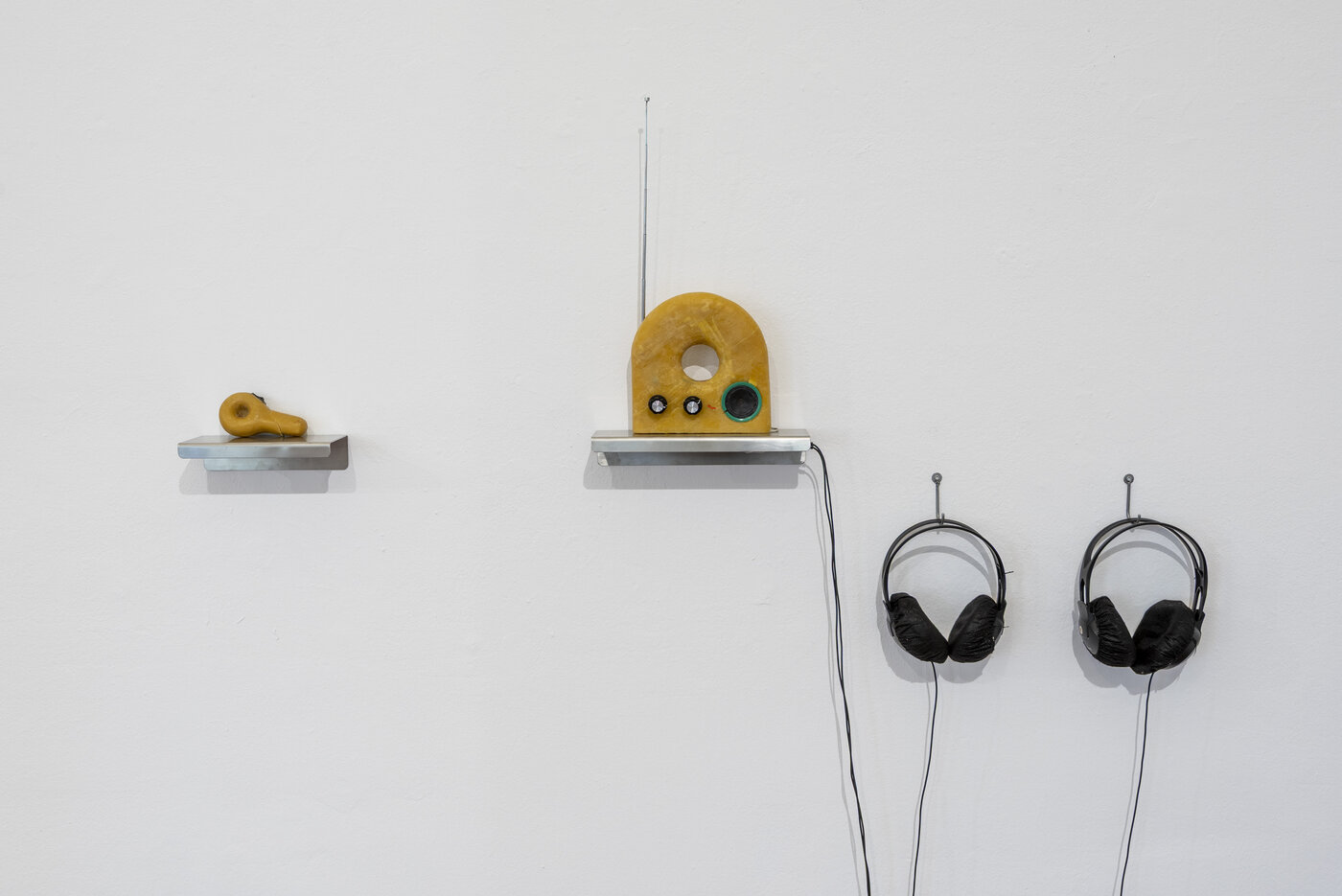 So geht es in Katharina Briksis Arbeiten um die Frage, wie Erinnerungen lebendig gehalten werden können und wie sich diese zugleich in anderen Kontexten verändern. Ausgehend von einem Aufenthalt in Istanbul hat sie Installationen entwickelt, die ortsspezifische Geräusche ortsunabhängig wiederholbar machen und so die Atmosphäre eines bestimmten Stadtteils in Istanbul einfangen. Für sie sind die so entstandenen Arbeiten Sound-Souvenirs. Zwei von ihnen wirken interaktiv, eine dritte, die Arbeit Seismograph 02 wird von einem Ventilator in Bewegung versetzt. Offen bleibt, ob das Experiment, durch Klänge die Erinnerung an einen Ort zu wecken, den man nie gesehen hat, gelingen kann.