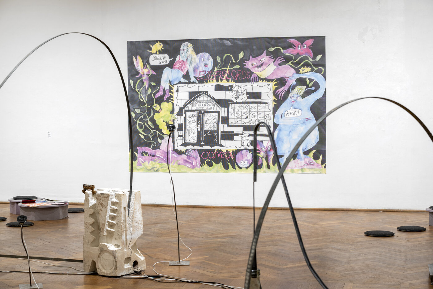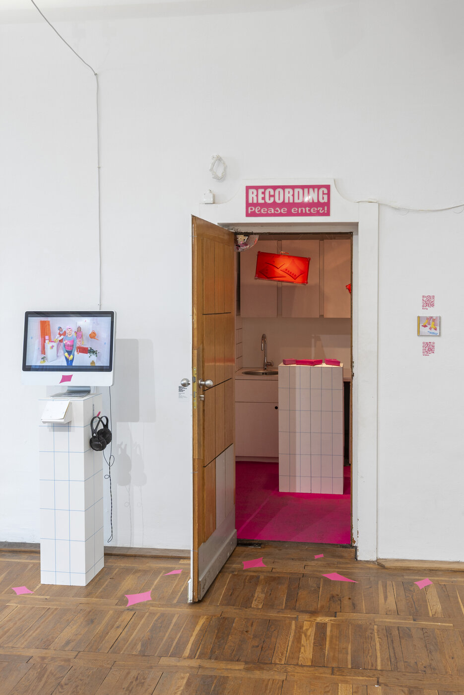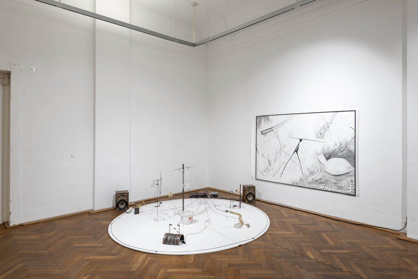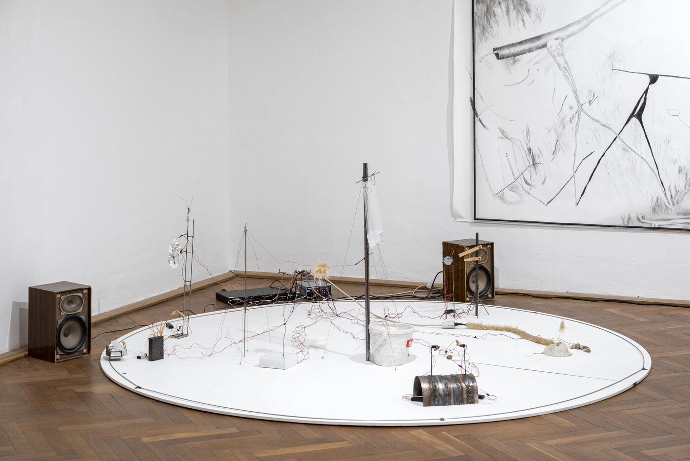 Bei einigen Installationen liegt das Moment der Veränderung zudem bei den Besucher*innen selbst, die durch ihr Eingreifen Geräusche und Klänge auslösen oder diese mitgestalten können. Darüber hinaus wird neuen Aufführungspraxen eine Bühne geboten, indem beispielsweise aus Comics vorgelesen wird. Aber auch die Erfahrung von Stille wird von großer Bedeutung sein: In einer in der Galerie errichteten Raumskulptur, in die die Besuchenden eintreten können, ist der Eigenklang zu hören.