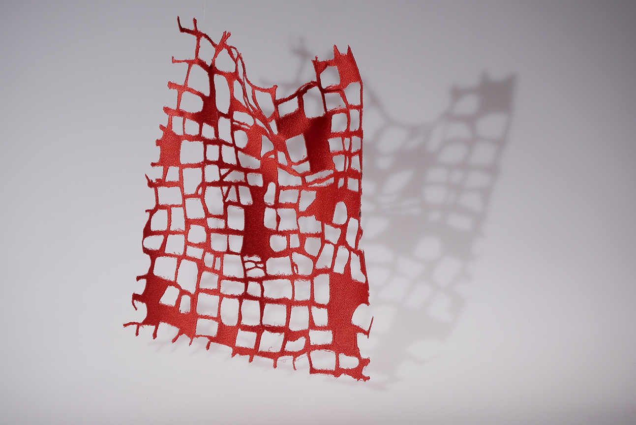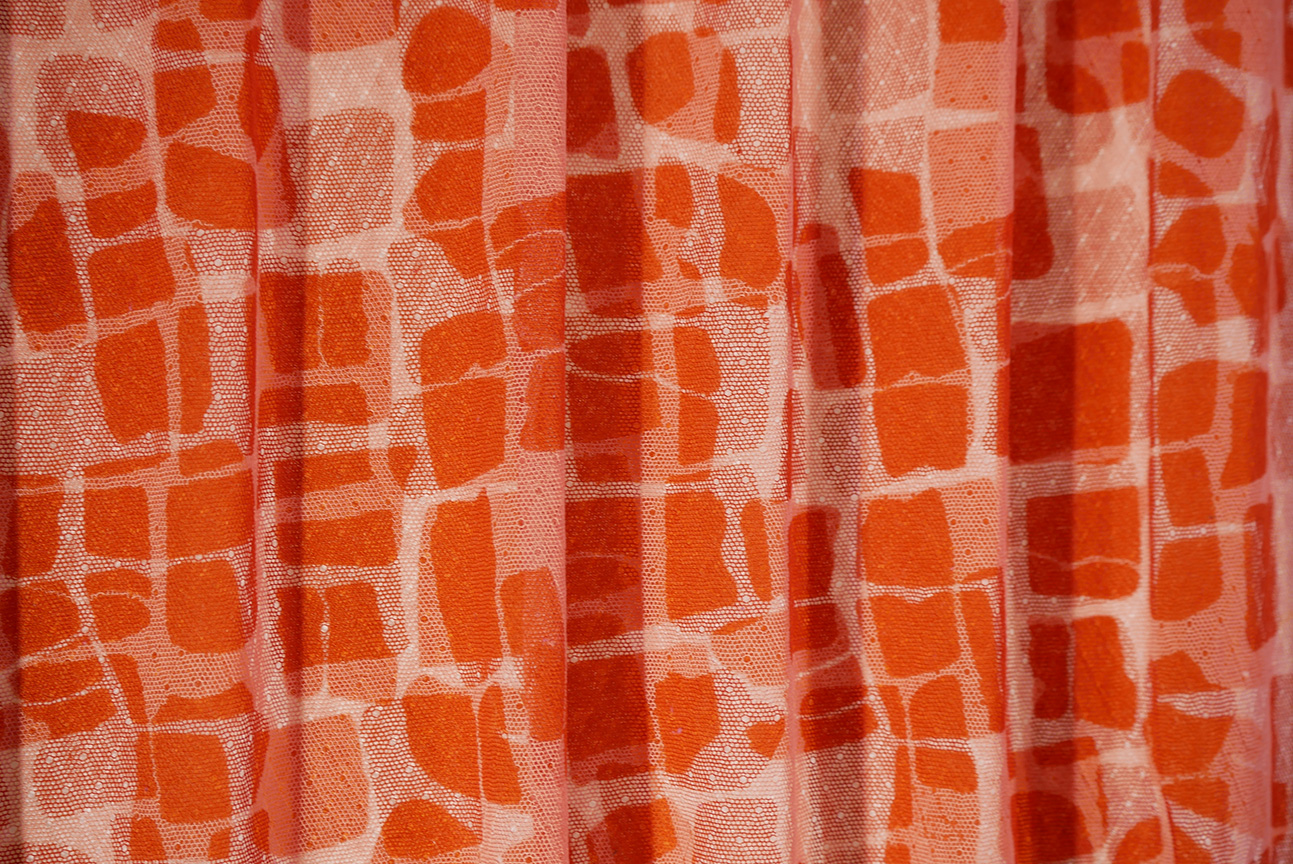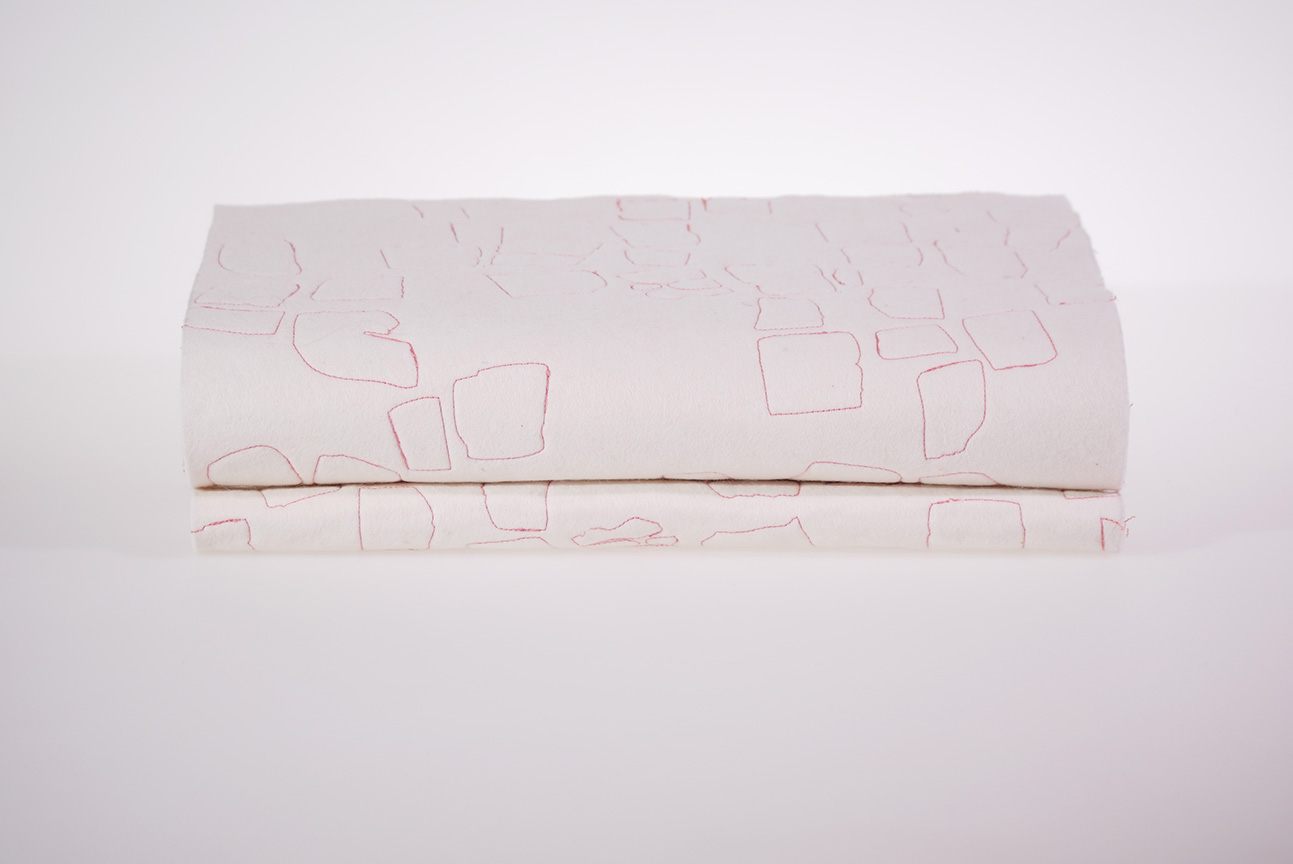 In dem Projekt Zwischentöne werden die vielseitigen Strukturen der Pflastersteine neu interpretiert und ins Textile Übersetzt. Der ausgangsfarbstoff Krapp verleiht dem Projekt eine Farbpalette in warmen, erdigen Rosa bis Rottönen. Mit den Techniken Siebdruck und Stickerei wird versucht, das unscheinbare zwischen den Steinen erfahrbar zu machen.