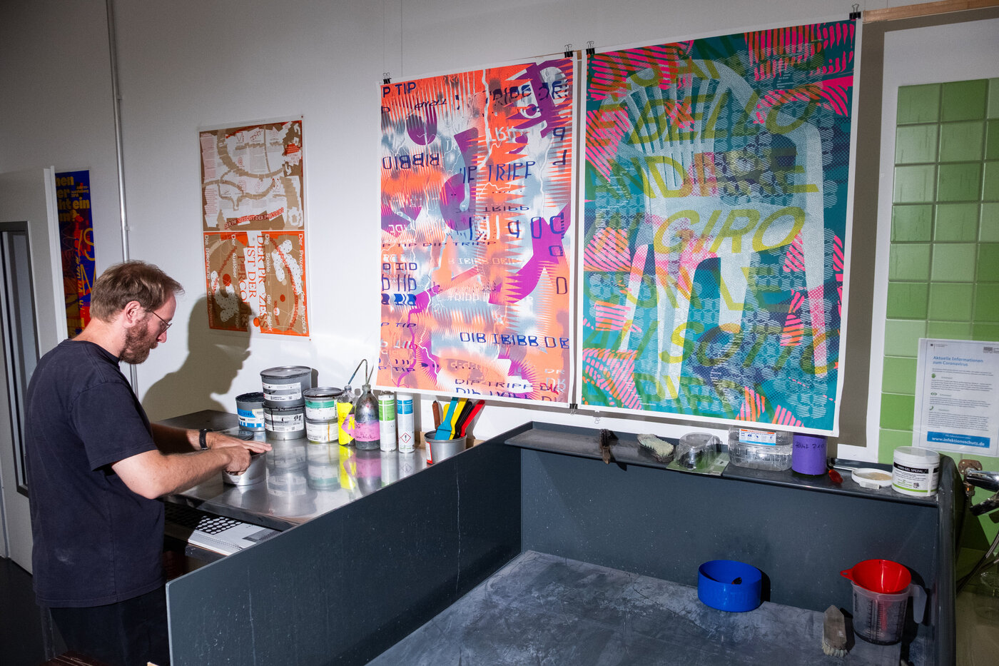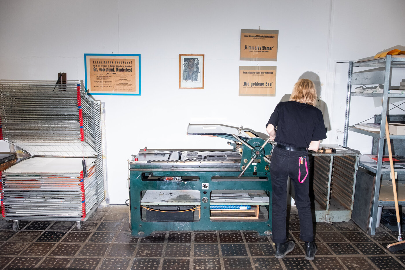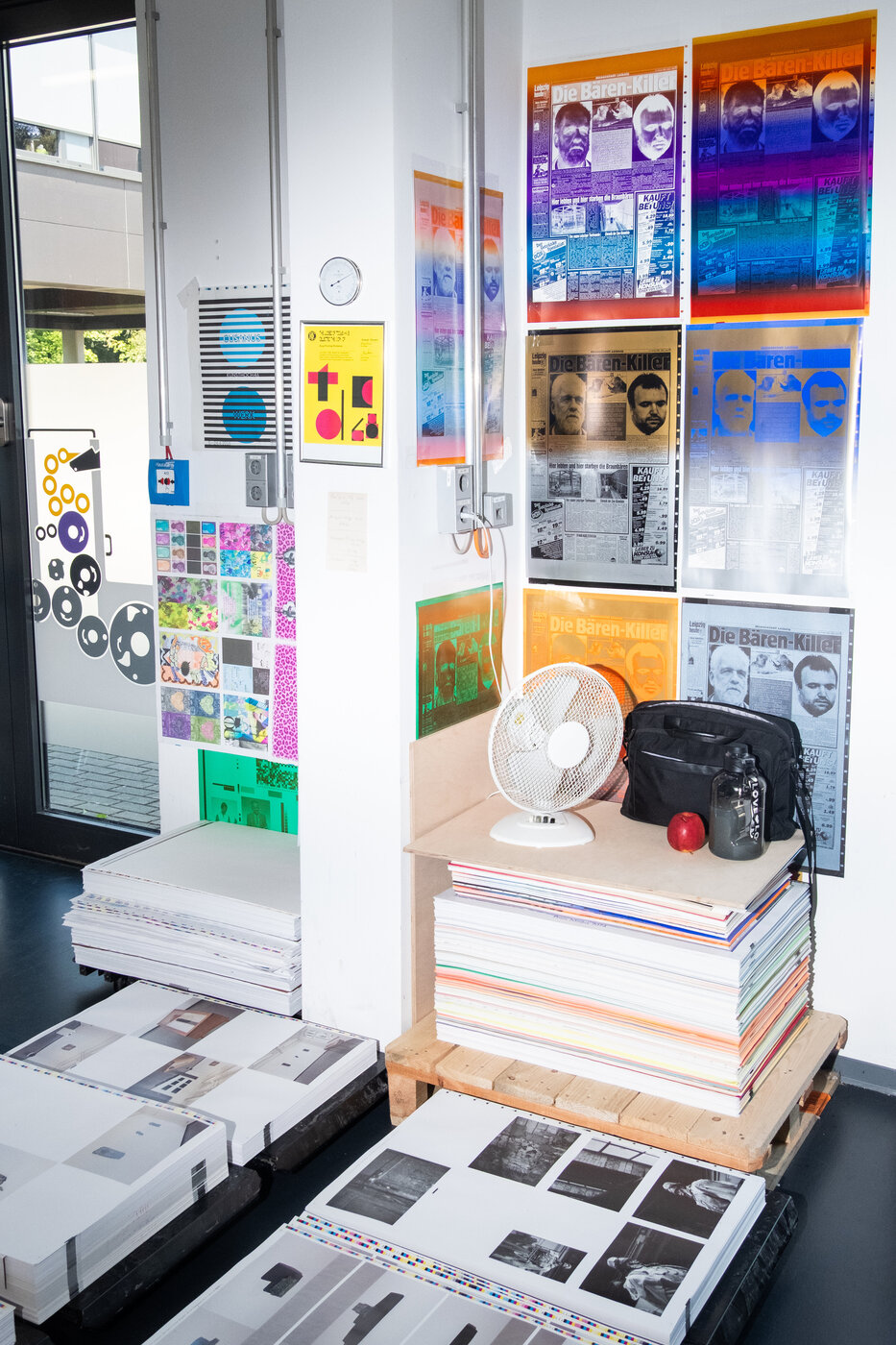 Die Nutzung der Siebdruckwerkstatt und des Bleisatzateliers ist vorrangig für die Durchführung von Lehrangeboten der jeweiligen Studiengänge vorgesehen. Die inhaltliche Gestaltung und Leitung der Kurse obliegt den Professor*innen und künstlerischen Mitarbeiter*innen des Studiengangs. Das Hochschulpersonal übernimmt in solchen Fällen nur administrative Aufgaben wie die terminliche Koordination der Belegung und die technische Pflege der Maschinen. Die Werkstätten können außerhalb von Lehrveranstaltungen jedoch auch von kleinen Gruppen Studierender oder Einzelpersonen genutzt werden. Dafür ist die Feststellung der fachlichen Qualifikation und die Teilnahme an einer technischen Einweisung, z.B. im Rahmen eines Kurses, notwendig. Eine künstlerisch-gestalterische Beratung wird durch die Mitarbeiter*innen der Druckerei nicht angeboten. Die Nutzung der Hochdruckpresse (Bleisatz) und der Drucktische (Siebdruck) ist nur im Beisein qualifizierten Personals möglich.
