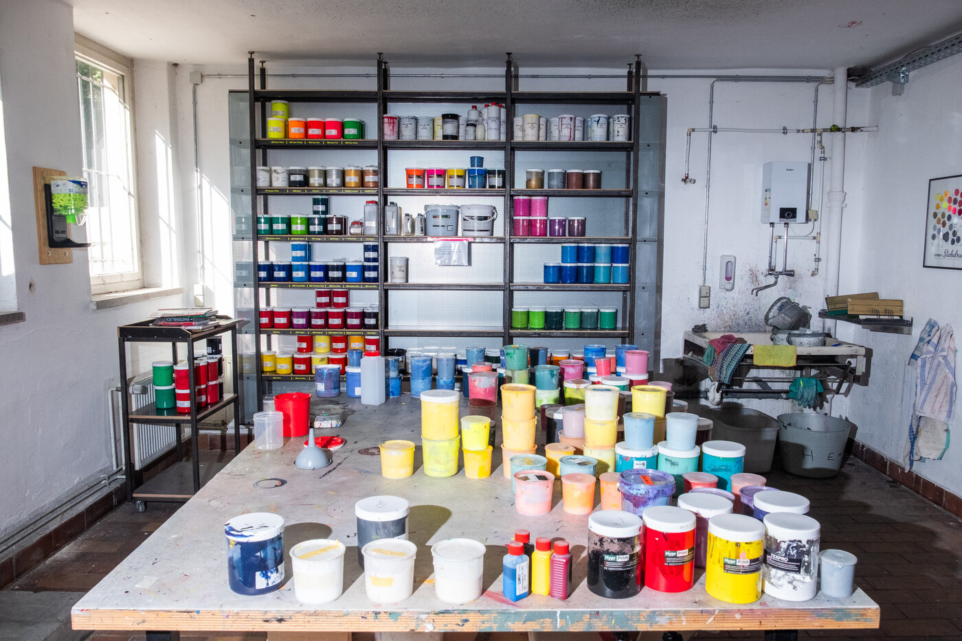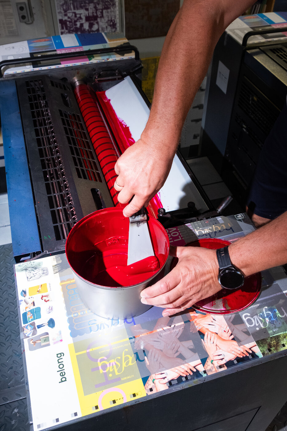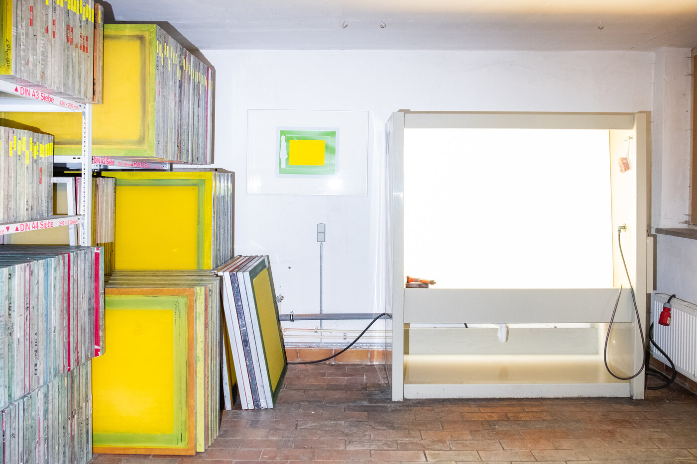 Die Nutzung der Siebdruckwerkstatt und des Bleisatzateliers ist vorrangig für die Durchführung von Lehrangeboten der jeweiligen Studiengänge vorgesehen. Die inhaltliche Gestaltung und Leitung der Kurse obliegt den Professor*innen und künstlerischen Mitarbeiter*innen des Studiengangs. Das Hochschulpersonal übernimmt in solchen Fällen nur administrative Aufgaben wie die terminliche Koordination der Belegung und die technische Pflege der Maschinen. Die Werkstätten können außerhalb von Lehrveranstaltungen jedoch auch von kleinen Gruppen Studierender oder Einzelpersonen genutzt werden. Dafür ist die Feststellung der fachlichen Qualifikation und die Teilnahme an einer technischen Einweisung, z.B. im Rahmen eines Kurses, notwendig. Eine künstlerisch-gestalterische Beratung wird durch die Mitarbeiter*innen der Druckerei nicht angeboten. Die Nutzung der Hochdruckpresse (Bleisatz) und der Drucktische (Siebdruck) ist nur im Beisein qualifizierten Personals möglich.