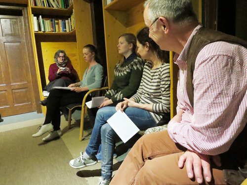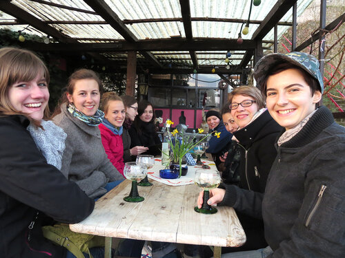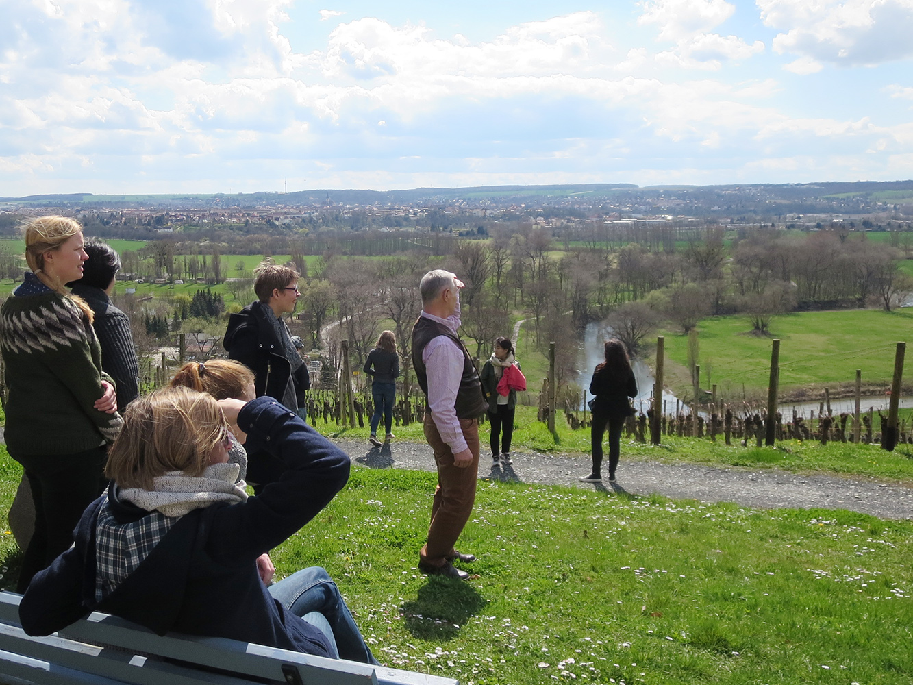 Neben den Studierenden und den Betreuern konnten wir Schnuppe von Gwinner als Gast begrüßen. Verschiedenste Vortragsthemen, vorbereitet durch die Studierenden und Frau von Gwinner, standen auf der Tagesordnung. Daneben lud das sonnige Wetter zu Spaziergängen ein. Am frühen Abend ergab sich unverhoffter Weise eine Weinverkostung am Unstrut-Ufer und der Abend endete mit einer literarisches Leserreise durch die Welt des Porzellans - von Marco Polo, über Goethe bis hin zu Ernst Jandl.
