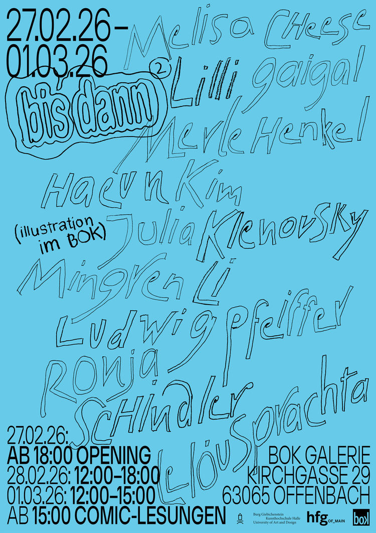Als Auftakt der Kooperation zwischen den zwei Kunsthochschulen fand bereits im Oktober 2025 im Raum für Grafik in Halle eine gemeinsame Ausstellung statt. Einen Raum für die Fortsetzung des Gesprächs bietet nun die Galerie des BOK (Bund Offenbacher Künstler e. V.) in Offenbach. Am Wochenende vom 27. Februar bis zum 1. März 2026 werden insgesamt neun Positionen präsentiert, die darüber hinaus in einer vor Ort erhältlichen Postkarten-Edition gebündelt werden.