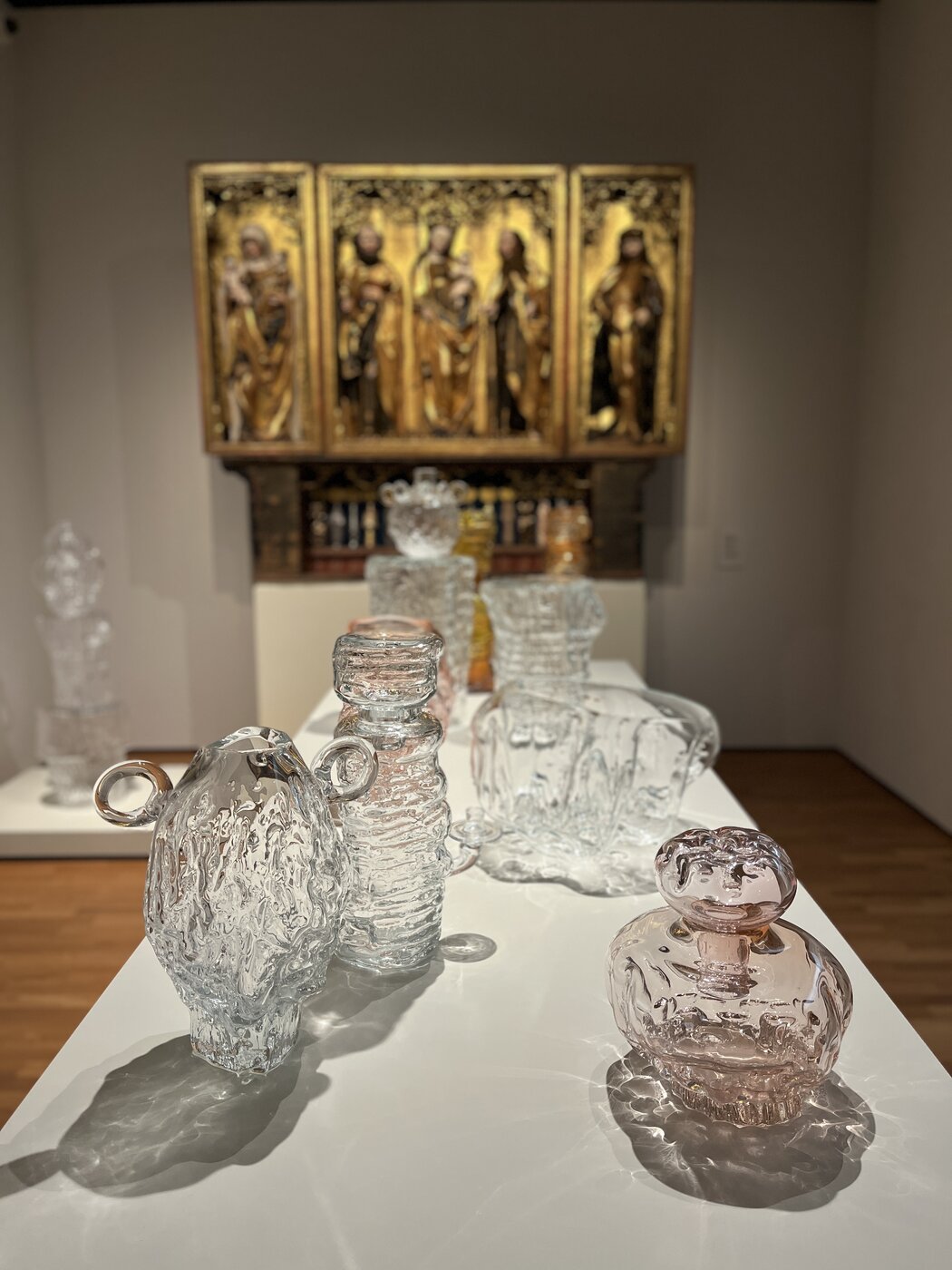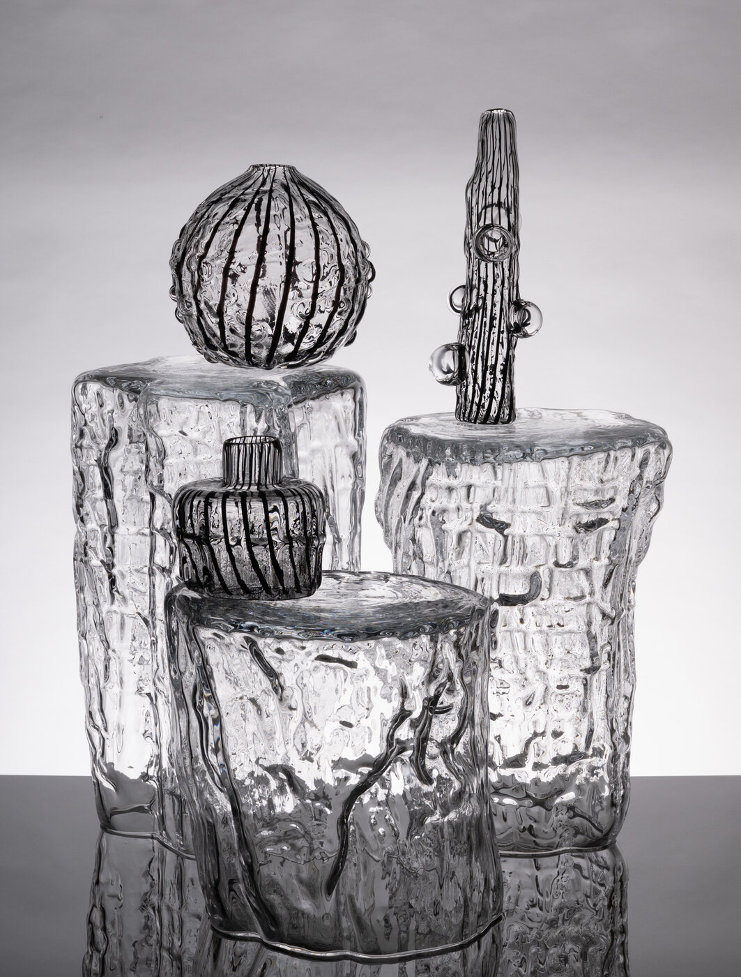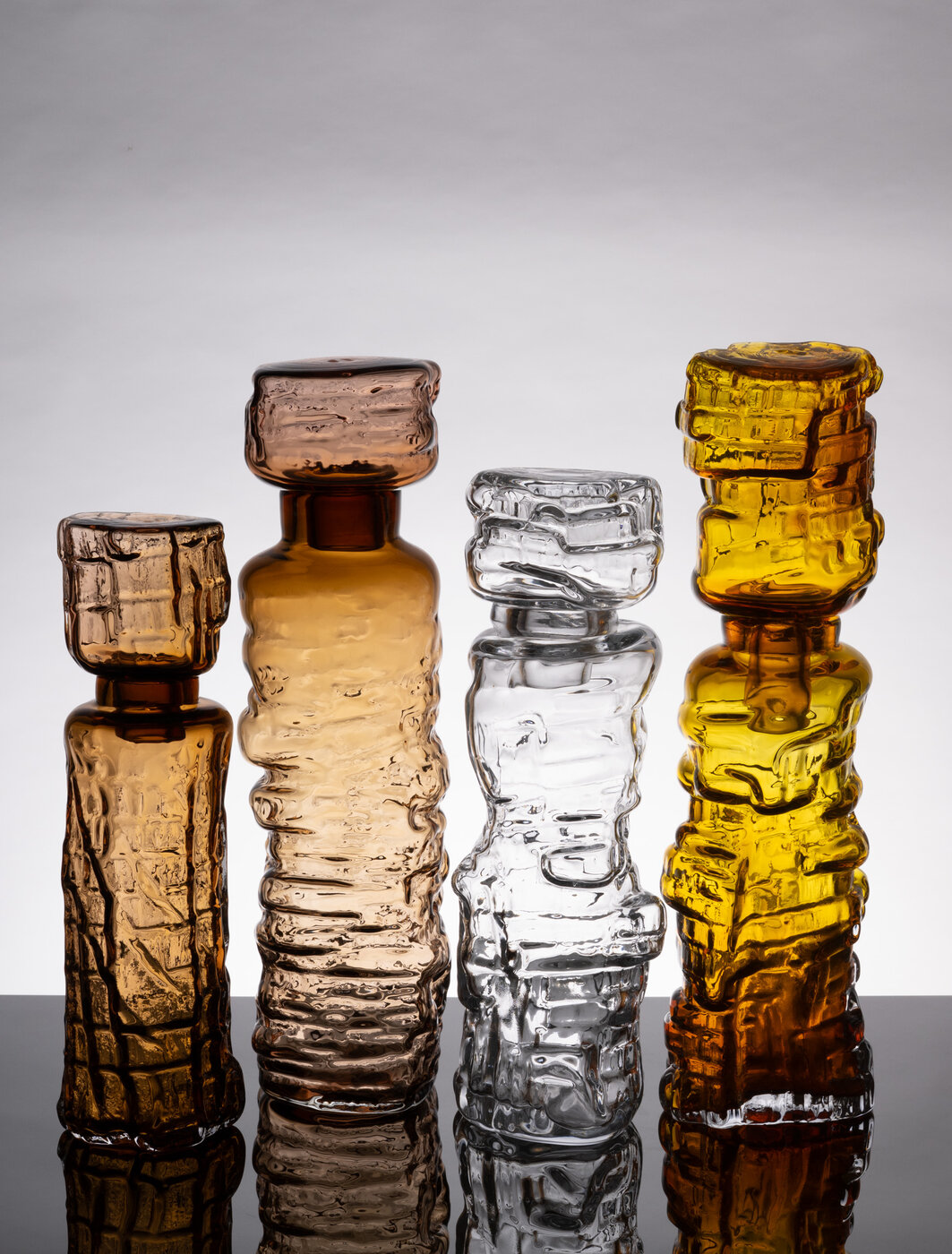 Der Masterstudent des Studiengangs Product Design/Ceramics and Glass Design, Andreas Rier wurde mit dem Preis der Grassifreunde in Höhe von 1.000 € geehrt. Seine Glasarbeiten entstehen am Heißglasofen, werden teilweise in Holzformen geblasen, teilweise frei geformt. Viele Objekte bestehen aus zwei Teilen und lassen sich vielseitig verwenden. Der besondere Reiz der Stücke liegt in ihren reliefartigen, unregelmäßigen Oberflächen mit reicher Textur, die den Farbnuancen zusätzliche Tiefe verleihen