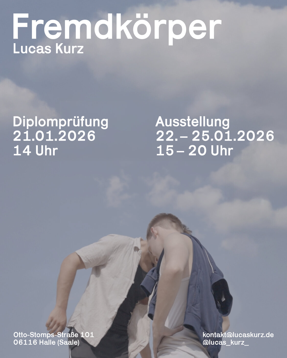 Diplompräsentation: 21.01.26, 14:00 Uhr / Ausstellung: 22.-25.01.26, 15:00-20:00 Uhr, Otto-Stomps-Straße 101, Halle