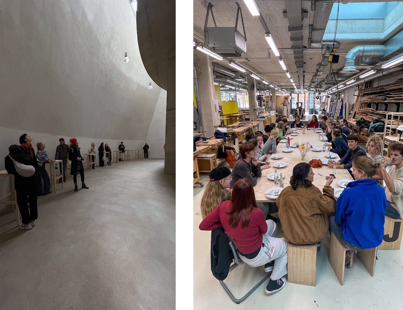 Von Kita bis Chorzentrum – auf der Exkursion ging es für die Projektgruppe „Superficial“ nach Düsseldorf und Hannover, um das Spektrum für adaptive Kirchenumnutzung abzustecken. Dabei ging die Reise auch zum Museum Insel Hombroich, um die atmosphärischen Raumskulpturen zu erleben. Das Übernachten wie echter Pilger*innen im Nikolauskloster war ebenso ein Highlight wie das gemeinsame Essen mit den Innen-/Architekturstudierenden der PBSA.