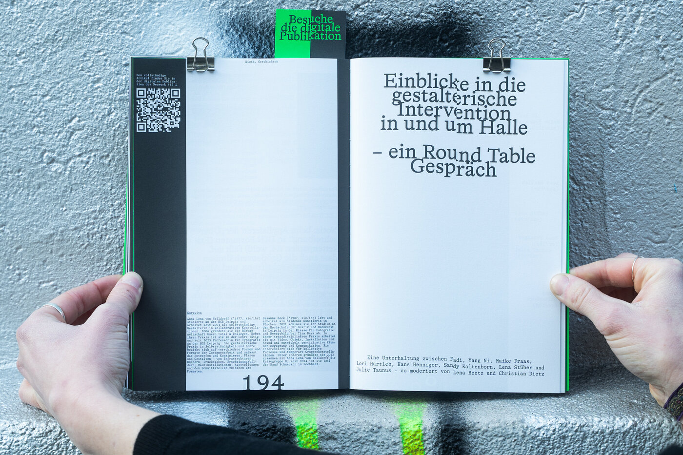 Die zwölfte Ausgabe des Neuwerks betreuten Lena Beetz, Christian Dietz, Aaron Wunner und Miriam Zimmermann redaktionell und arbeiteten für die Gestaltung des Heftes sowie der Onlinepublikation eng mit Helen Hausdorf und Gue Hyun Lee zusammen.