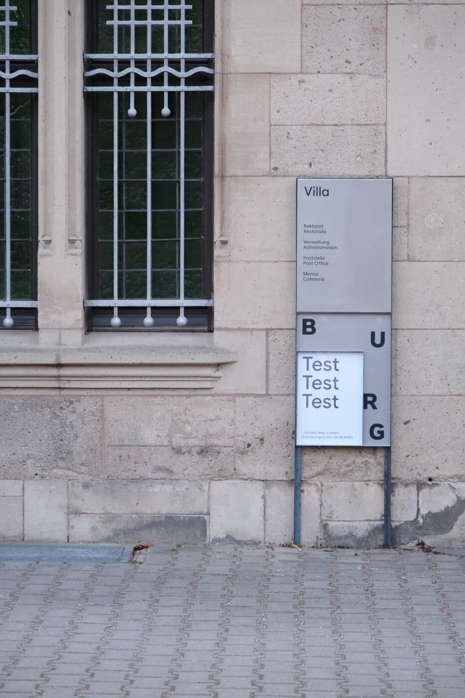 Die Orientierungselemente beinhalteten in ihrer Struktur feste Komponenten und ließen darüber hinaus Spielraum für bereichsspezifische und temporäre Informationen. Die gewonnenen Erkenntnisse und das Feedback der BURG-Mitarbeiter*innen und der Bewerber*innen fließen in den weiteren Entwurfsprozess ein.