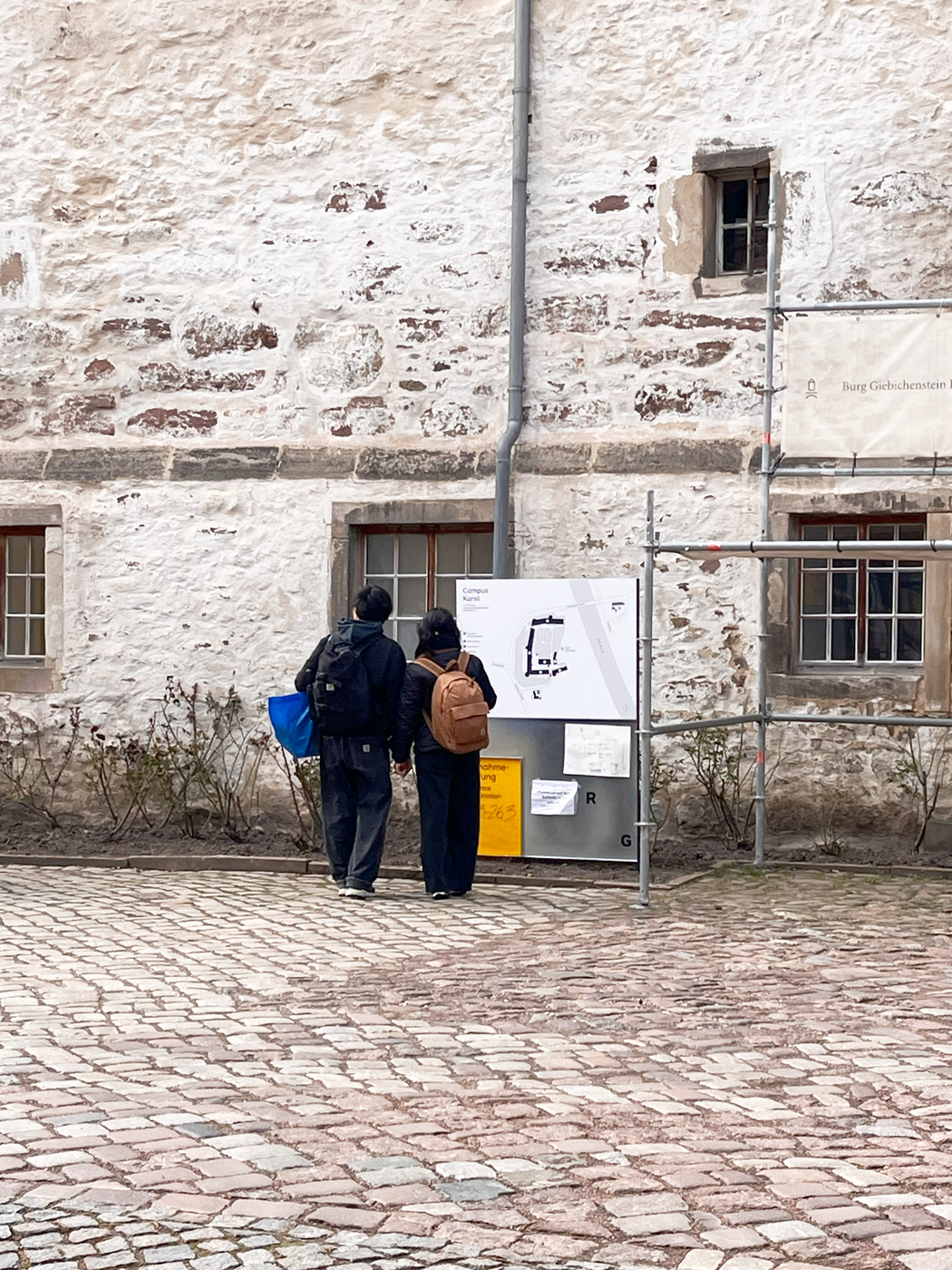 Bewerber*innen des Fachbereichs Kunst trafen vis-à-vis zum Eingangstor der Unterburg auf einen Lageplan, anhand dessen sie sich orientierten konnten.