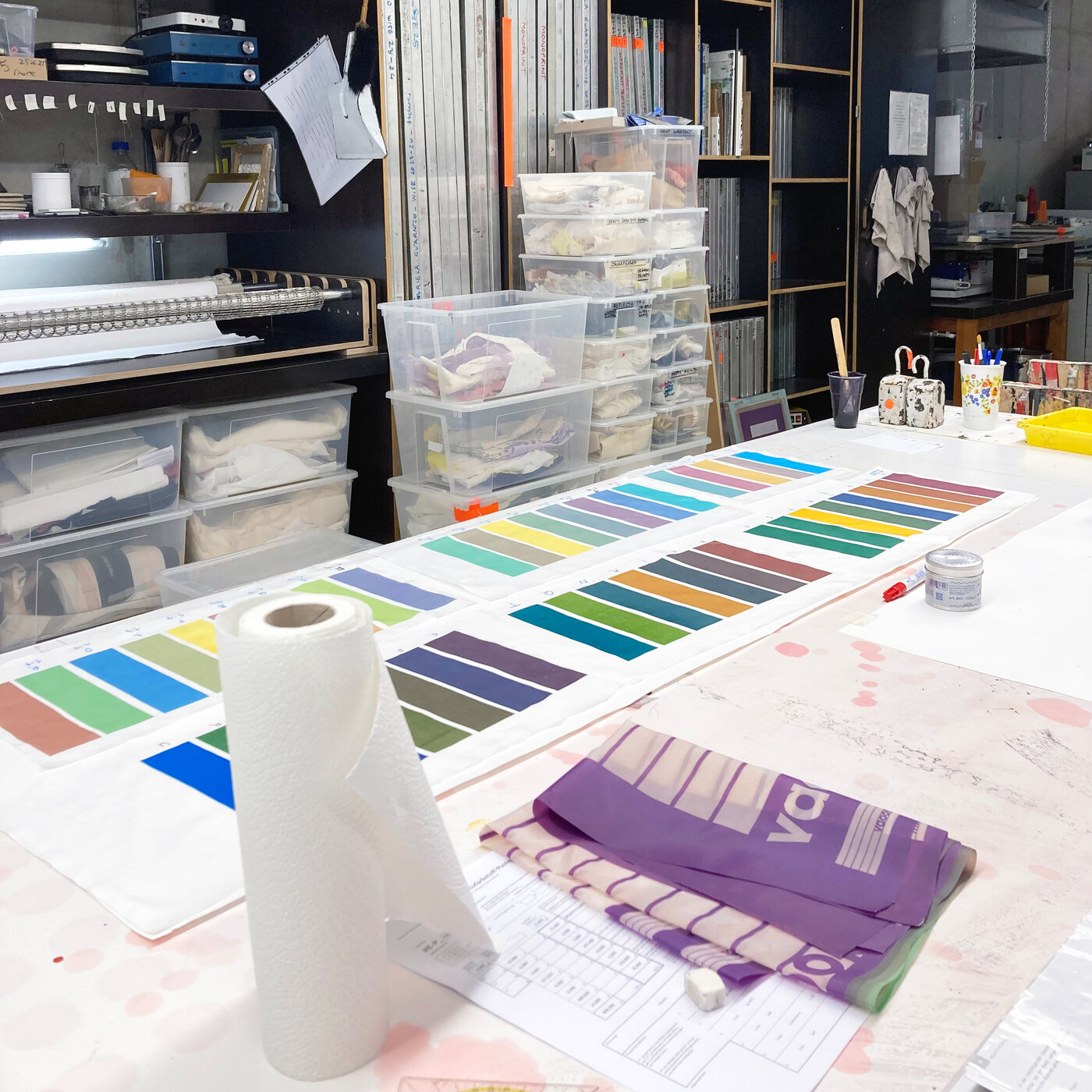 Die Einführung behandelt spezifische Inhalte des Textildrucks und bietet den Studierenden die Möglichkeit, diese auszuprobieren. In drei Schritten (Beschichten, Belichten, Entwickeln) wird die fotomechanische Druckform für den Filmdruck hergestellt. Die Druckform kann in mehreren Druckstufen angeordnet und mittels Verschiebung, Überschneidung, Drehung zu einem komplexeren Muster auf unterschiedlichen Bedruckstoffen entwickelt werden. Neben der handwerklichen Technik werden folgende Themen verhandelt: Farbpigmente und Farbstoffe, Pigmentdruck und Farbstoffdruck, Ausbrennerdruck, Monoprint, Bindemittel und Verdickungsmittel, Farbenherstellung, Rezepturgestaltung und Rezeptur-Archivierung, Dämpfen und Kondensation, Drucknachwäsche und Nachbehandlung.