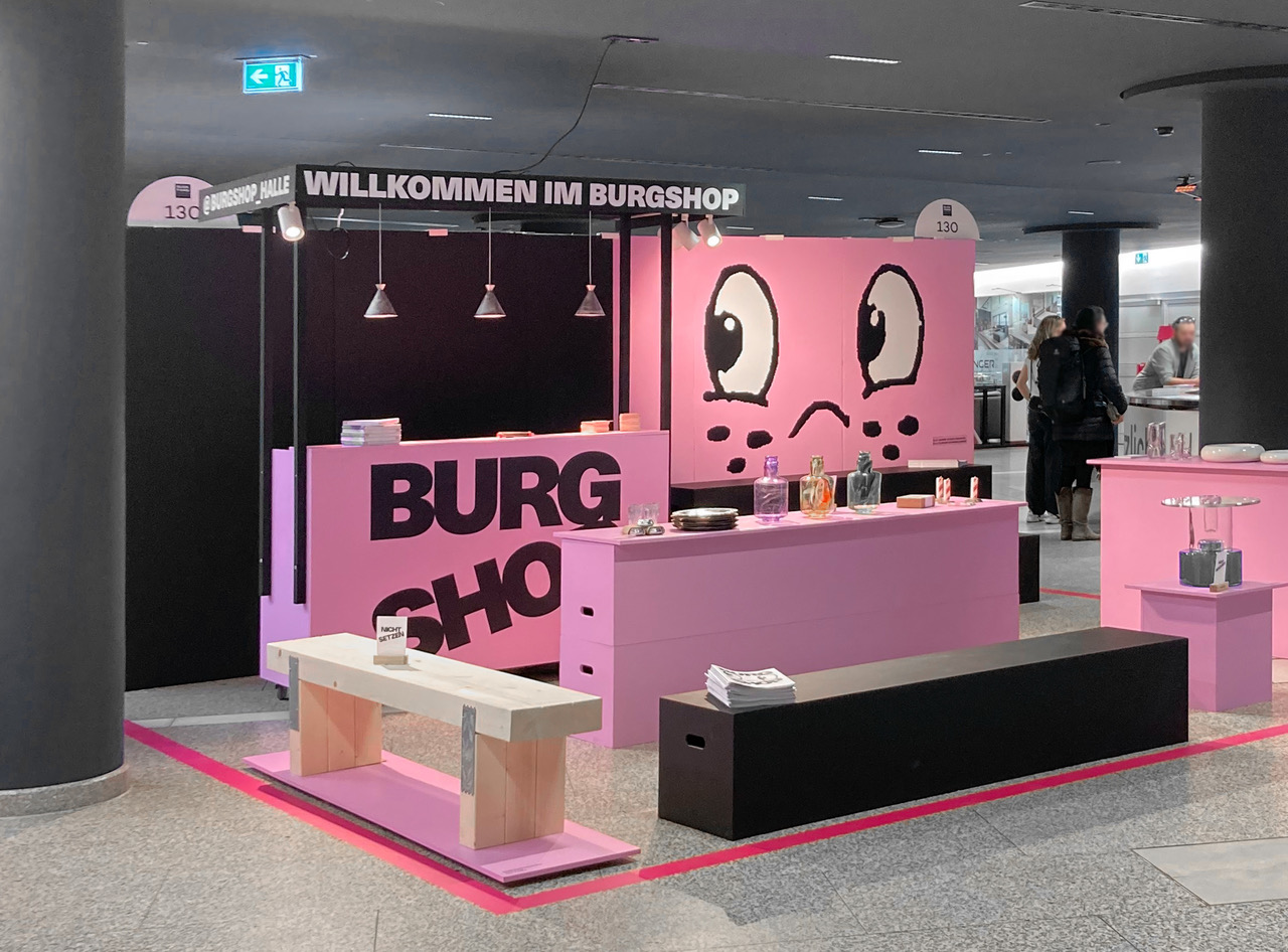 Der Burgshop bietet den Studierenden und Absolvent*innen der Hochschule die Möglichkeit, Erfahrungen in Marketing und Verkauf eigener Produkte zu sammeln. Geöffnet ist der Burgshop zu ausgewählten Veranstaltungen, sowohl auf dem Campus als auch außerhalb. Die Homebase der Shops auf dem Campus Design am Neuwerk bildet ein ausgebauter Container.