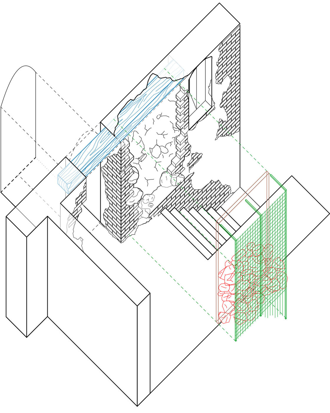 Da eine vollumfängliche und denkmalgerechte Sanierung unrealistisch ist, machen wir uns auf die Suche nach einem alternativen Umgang mit dem Bestand: Durch temporäre Nutzung und schrittweise Instandsetzung soll das Gebäude erhalten, aktiviert und behutsam in die Gegenwart überführt werden.