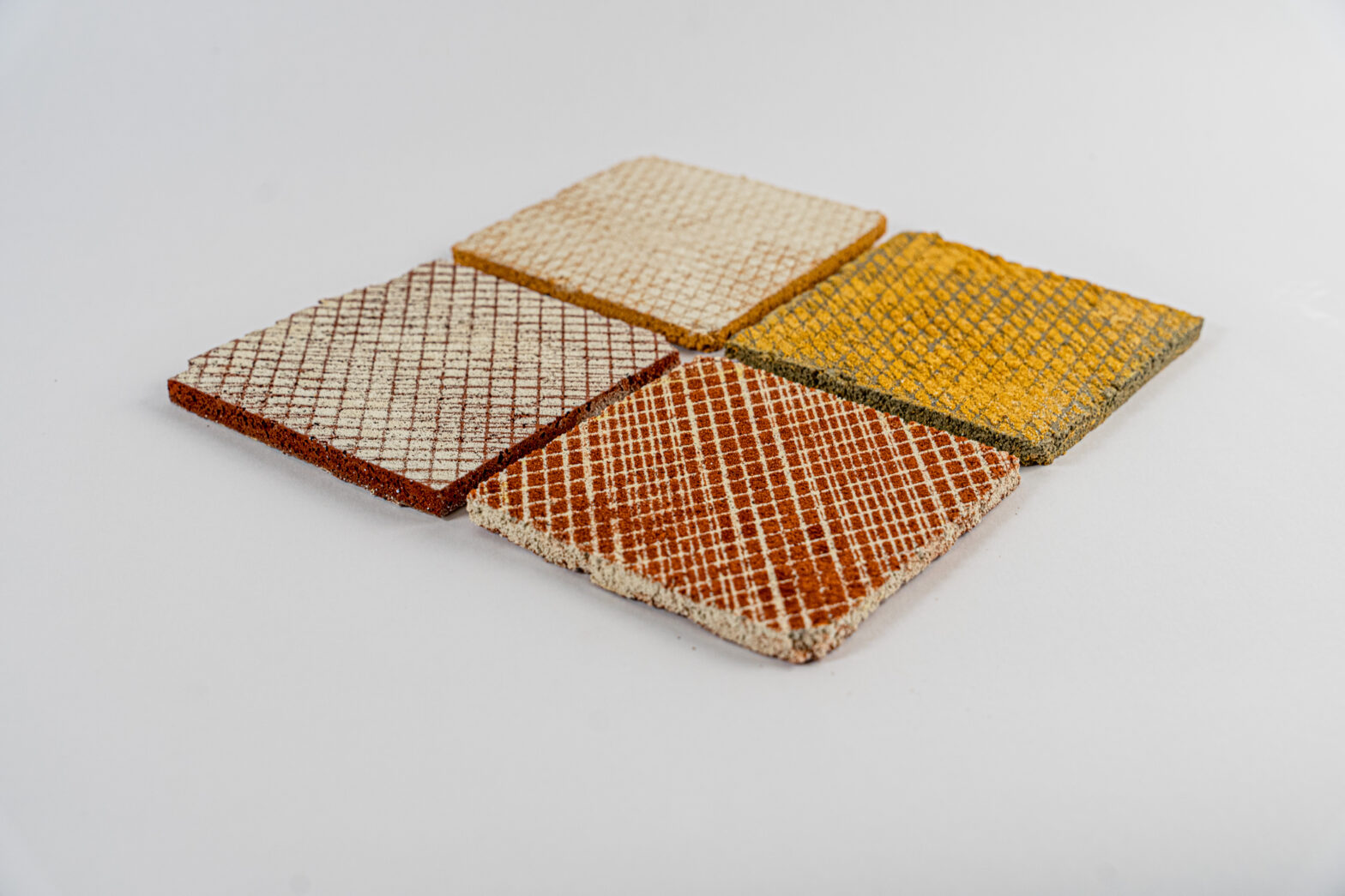 UpTiles Biomineralized tiles with unique patterns from brick and other waste At Uptiles, patterned tiles are created using a three-part stencil whose elements are layered and rotate at different speeds. This results in each tile having a unique pattern that only repeats every 10,000 pieces. The colors are not produced with pigments but come from …