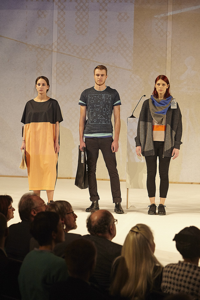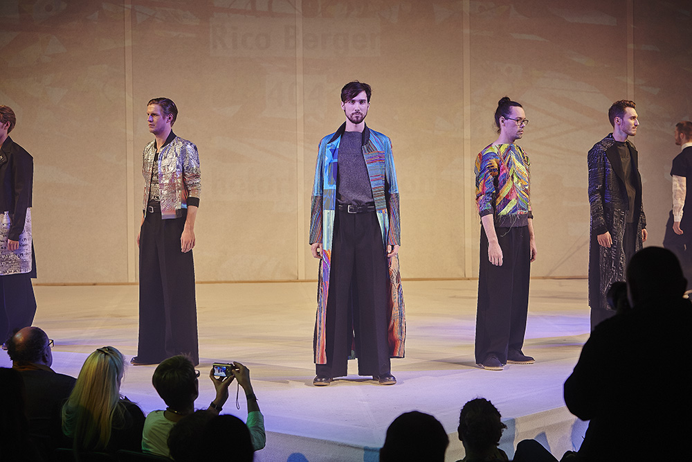 Ihre Bachelor-Kollektionen präsentierten: Ameli Neumann – „aalaaniaq“, Louise Unger – „Kunigunde“, Rico Berger – „White Noise“ sowie Marie Faust und Irena Zrno die Kollektion „Two Factor Theory“.