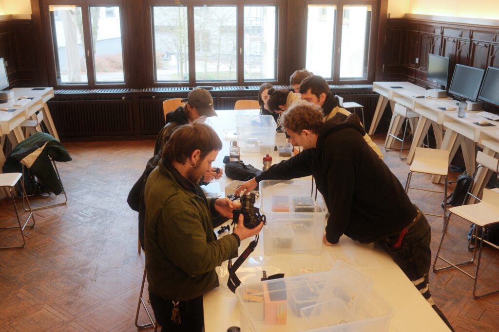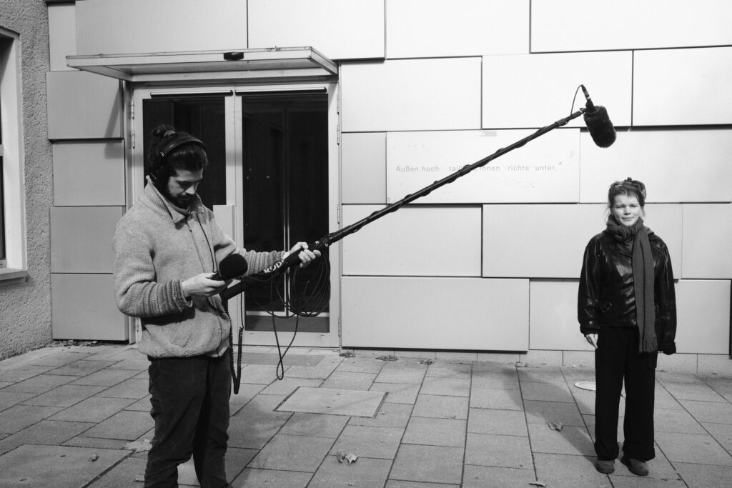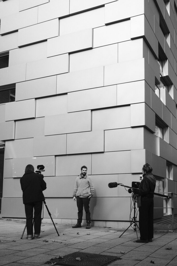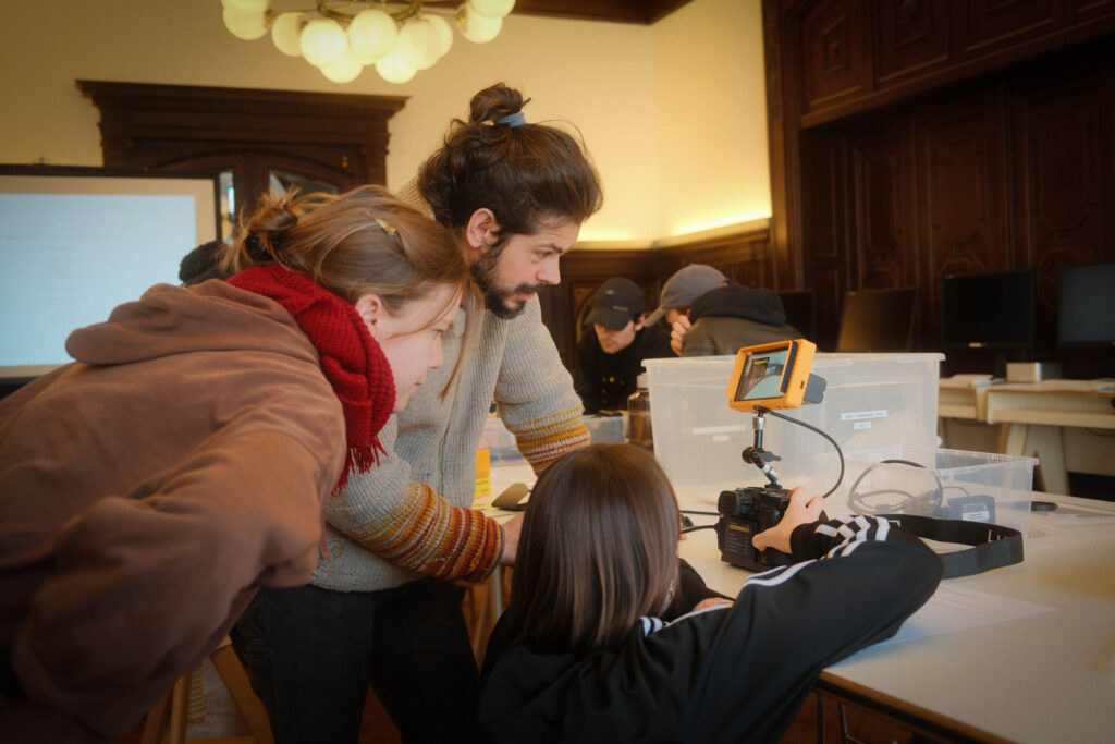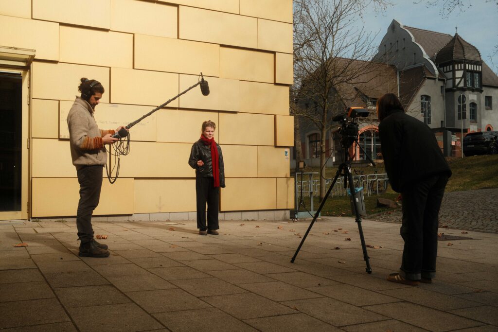 Der zweite Tag stand ganz im Zeichen des Interviews und der Drehplanung. Die neu erlernten Kenntnisse in Licht und Ton wurden direkt praktisch umgesetzt. Ideen nahmen Form an, Notizbuch-Seiten füllten sich und langsam entstand aus ersten Gedanken ein klarer Plan für die eigenen Filmprojekte. Schließlich sollten die Studierenden bereits am darauffolgenden Tag ihre Geschichte visuell umsetzen. Bereits früh am Mittwochmorgen machten sich die Teams bei bestem Wetter an die Arbeit.