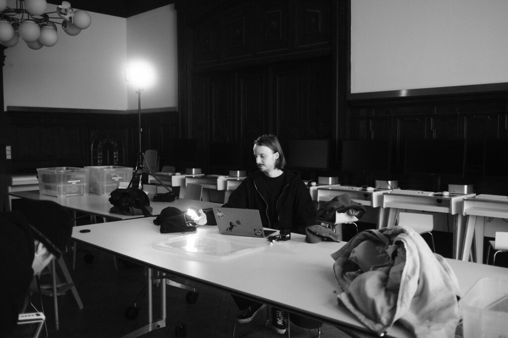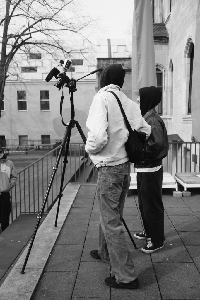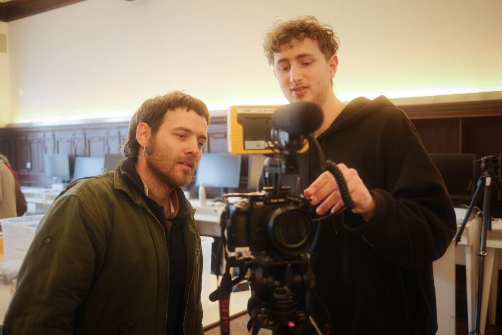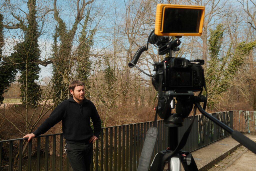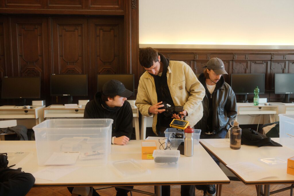 Der zweite Tag stand ganz im Zeichen des Interviews und der Drehplanung. Die neu erlernten Kenntnisse in Licht und Ton wurden direkt praktisch umgesetzt. Ideen nahmen Form an, Notizbuch-Seiten füllten sich und langsam entstand aus ersten Gedanken ein klarer Plan für die eigenen Filmprojekte. Schließlich sollten die Studierenden bereits am darauffolgenden Tag ihre Geschichte visuell umsetzen. Bereits früh am Mittwochmorgen machten sich die Teams bei bestem Wetter an die Arbeit.