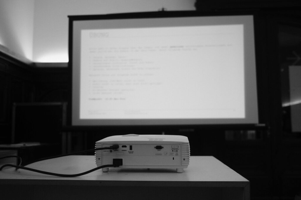 Der Höhepunkt ließ nicht lange auf sich warten. Im abgedunkelten Hochschulkino wurden die fertigen Werke schließlich auf großer Leinwand und mit tollem Sound präsentiert. Ein würdiger Abschluss für eine Woche voller Soundprobleme, heißen Laptops und beeindruckenden Fortschritten.