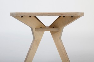 Beim Aufbau werden zuerst die Beine in der unteren Platte durch Zusammenstecken montiert. Mit dem Aufsetzen der Tischplatte wird ihre Position fixiert. Die Schrägstellung der Beine stabilisiert den Tisch in alle Richtungen gegen Belastung. Stabilität wird ebenso durch die ausgestellten Nasen an den Beinen vermittelt. Sie nehmen das empfundene Gewicht der Platten auf und prägen das charakteristische Erscheinungsbild mit.