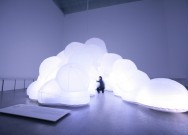 A place that one thought was a floor becomes a chair, a ceiling, a wall from various positions. The floor levels are relative and spatiality is perceived differently according to one’s position. Here, people are distributed three-dimensionally in the space. This is a place like an amorphous landscape with a new experience of various senses of distances.