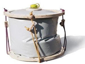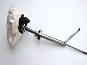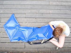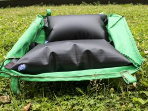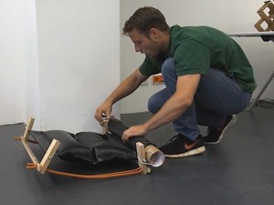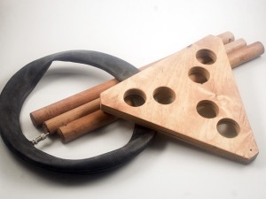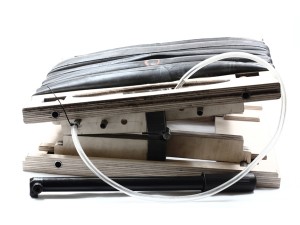 Dieser Hocker beschreibt ein Prinzip. In den Inneren drei, der insgesamt sechs Löcher stecken die Stuhlbeine. Durch die äußeren drei Löcher führt ein Fahrradschlauch, der mit einer Schlaufe um je ein Beine gelegt ist. Das Ventil des Schlauches befindet sich unter der Sitzfläche. Eine Luftpumpe füllt den Schlauch. Hierbei werden die Beine festgeklemmt und der Stuhl steht stabil. Das Sitzkissen, das sich oberhalb der Sitzfläche aufbläht, bietet dem Nutzer angenehmen Sitzkomfort. Bei der Wahl der Stuhlbeine gibt es, im Gegensatz zu Hockern mit klassischen Steckverbindungen, keine bestimmte Vorgabe. Alles was annähernd dem Durchmesser der Löcher entspricht, kann als Bein oder Ersatzbein fungieren. Wie zum Beispiel eine Weinflasche oder ein Ast. Das Prinzip lässt sich beliebig vergrößern oder in andere Anwendungen überführen.