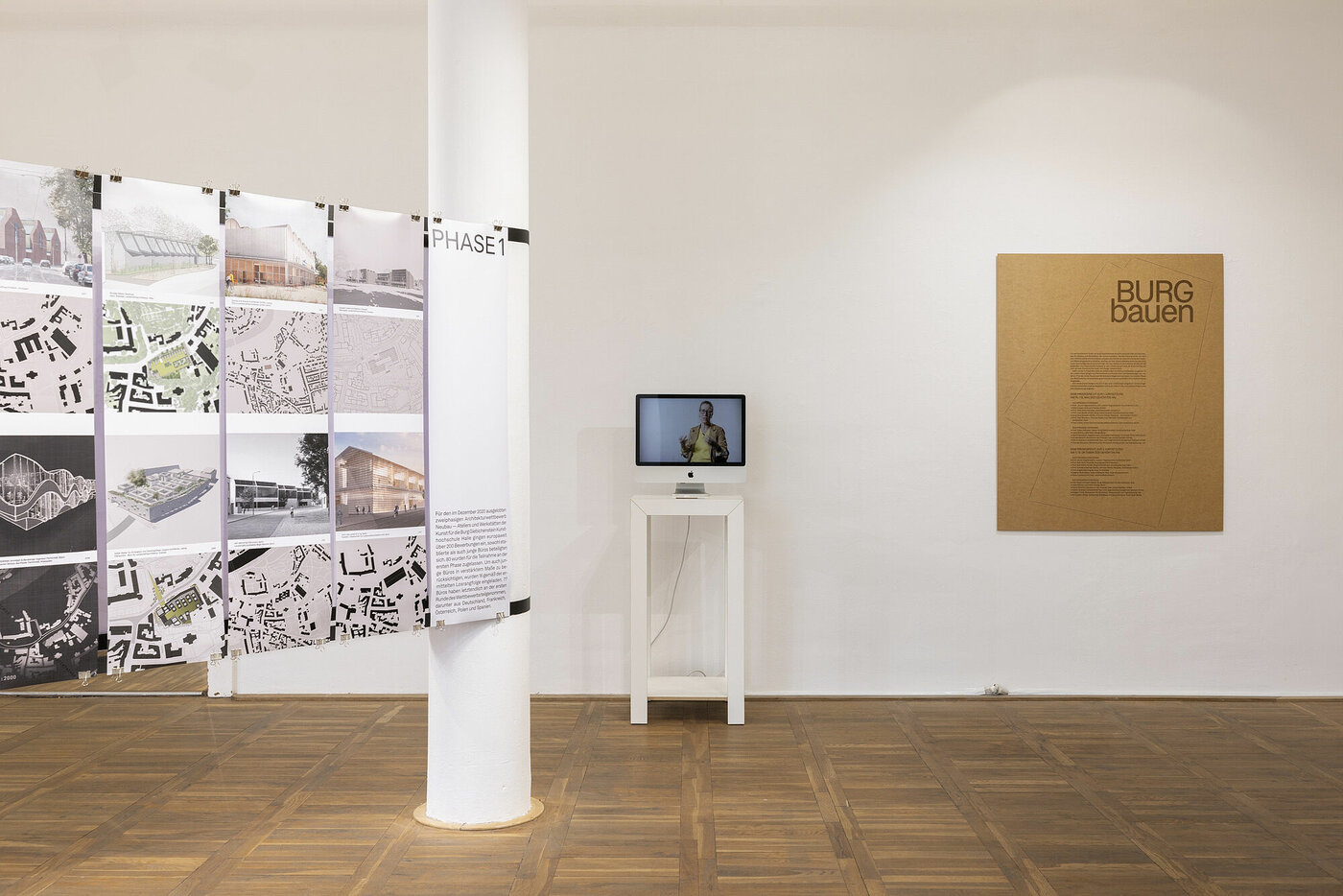Die Ausstellung in der Burg Galerie im Volkspark zeigte in ihren Räumlichkeiten alle Ergebnisse des zweistufigen Architekturwettbewerbes. Neben der Vorstellung der verschiedenen Lösungen der Architekturbüros aus den beiden Wettbewerbsphasen sowie der Preisträger*innenentwürfe werden pointierte Blicke auf das Baugeschehen an der BURG gelenkt.
