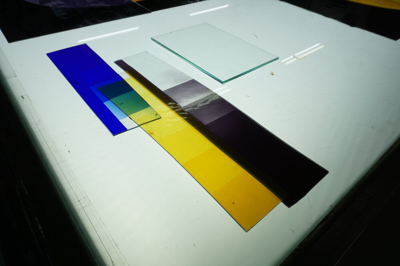 Ein offenes, Material- und genreüberschreitendes Arbeiten ist wichtiger Teil unserer Auseinandersetzung. Sie bewegt sich im Spektrum von Malerei, Installation und der Beschäftigung mit dem Wechsel zwischen zweidimensionalem und dreidimensionalem Denken und Arbeiten, das wir durch die besonderen, im Material Glas enthaltenen Möglichkeiten erforschen. Hierbei untersuchen wir die Verbindung dieses Wissens mit einer Vielzahl von Materialien, Techniken und künstlerischen Arbeitsweisen. Wir setzen uns mit Räumen, Baukörpern und der Entwicklung von Ausstellungen in ihnen auseinander: Kunst und Kontext.