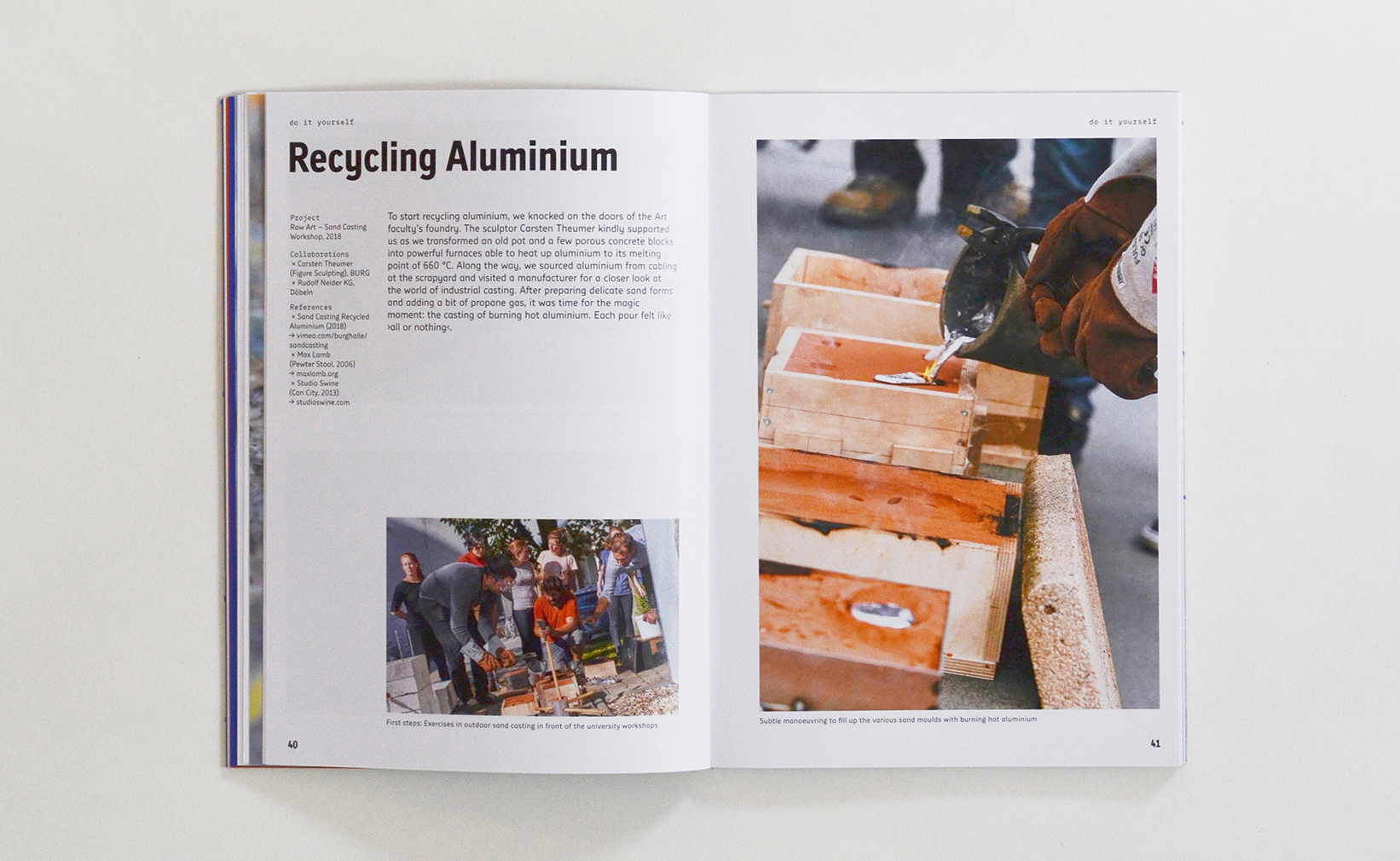 This second publication by the Burg Material collection takes a closer look at the materials and methods which were part of more than eight years (2012-2020) of hands-on material education. The collaborative and hands-on work by the Platform MAKE. is shared and demonstrated in 20 projects focused on analogue-digital, do-it-yourself, free experimentation, live research, and speculative futures.